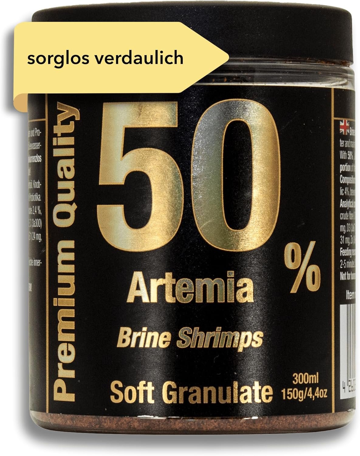 Für Ihre Fische nur das Beste – unser Fischfuttergranulat bietet einen konkurrenzlos hohen Anteil an Artemia von 50 %, die von Fischen geliebt und äußerst gut angenommen wird. Verwöhnen Sie Ihre Fische mit unserem Zierfischfutter.