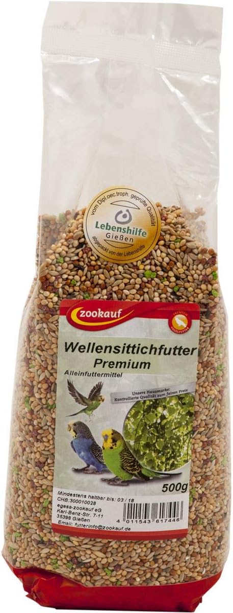 Die Zusammensetzung dieses Futters wurde speziell auf die Bedürfnisse von Wellensittichen abgestimmt. Das Premiumfutter ist eine ausgewogene, doppelt gereinigte, durchgehend frisch abgepackte, artgerechte Samenmischung mit einem großen Anteil an hochwertigen Hirsevarianten (z. B. Mohairhirse), dazu feine Backwaren und Muschelgrieß für eine gute Wirkung auf den Muskelmagen. Eine gesunde Ernährung mit dem Wellensittichfutter Premium führt zu einer optimalen Verdauung und einer hervorragenden Kondition.