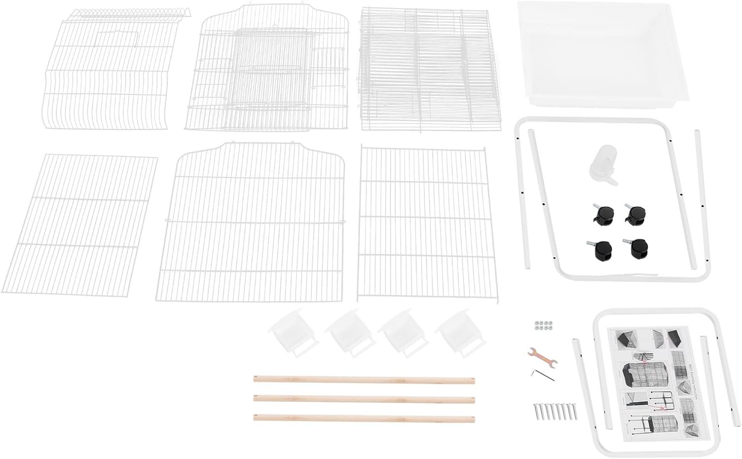 Lieferumfang: 1 x Vogelkäfig, 4 x Futternäpfe, 1 x Tränke, 4 x Universalräder, 1 x chinesische Montageanleitung