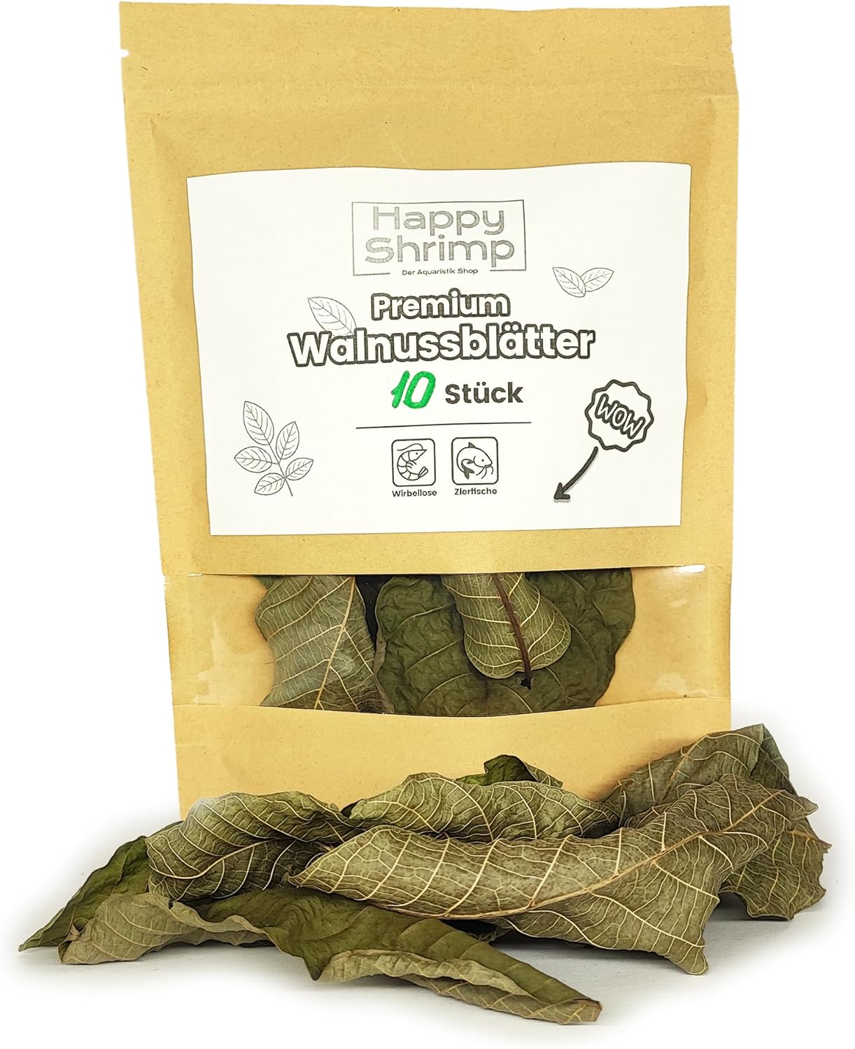 Wie viel sollte ich füttern? Alle 1-2 Wochen ein Walnussblatt bis ca. 20 Liter. Die Walnussblätter können im Aquarium liegen bleiben, bis nur noch das Skelett übrig bleibt. Kann den PH-Wert leicht senken, wenn Sie zu viele Blätter haben.