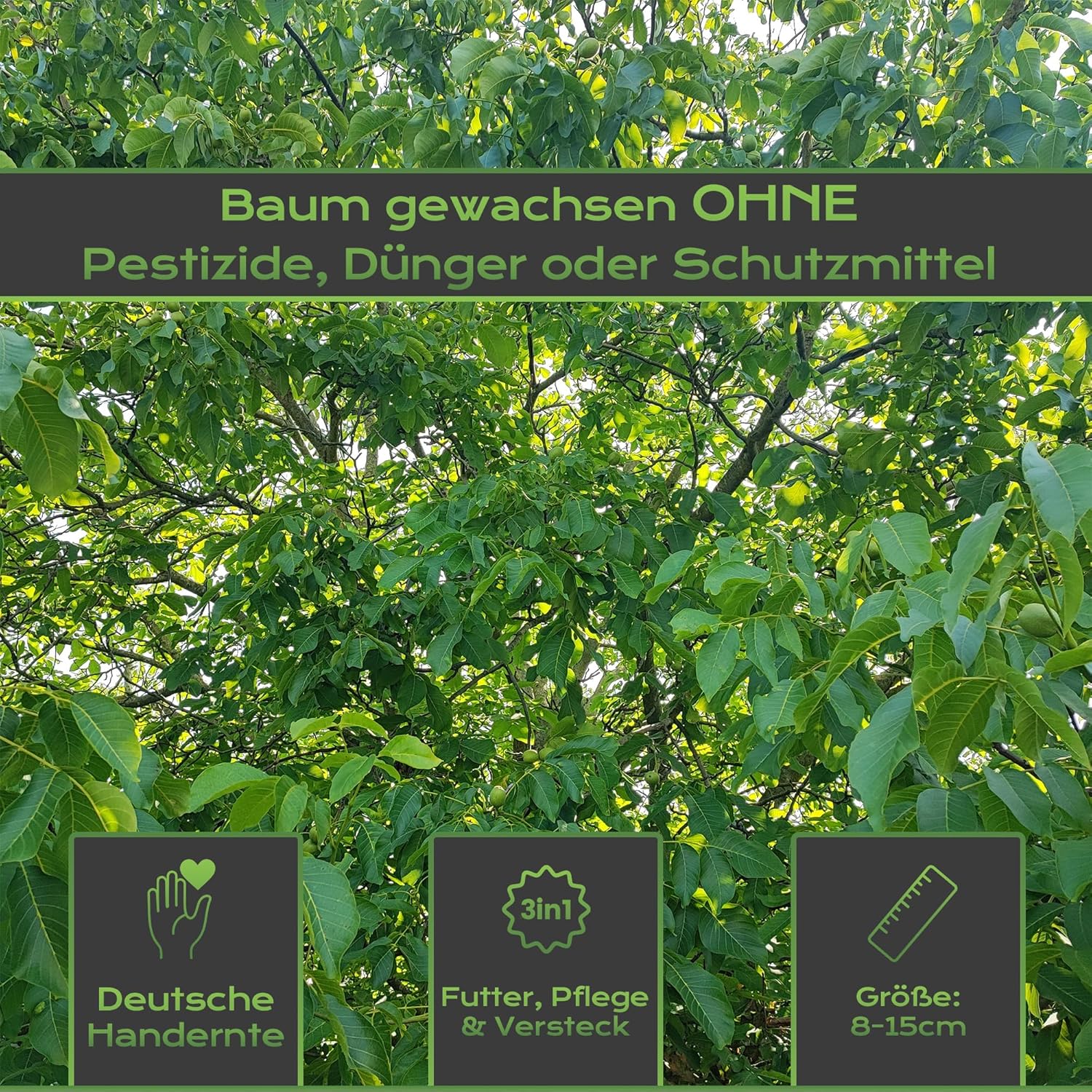 Unsere Premium-Walnussblätter werden persönlich direkt vom Baum gepflückt und im Schatten getrocknet. Es werden nur die einzelnen Blätter verkauft. Wir trennen jedes einzelne Blatt von Hand vom Stiel. Der Walnussbaum steht in unserem Garten und wächst dort ohne den Einsatz von Pestiziden, synthetischen Düngemitteln oder Pestiziden.