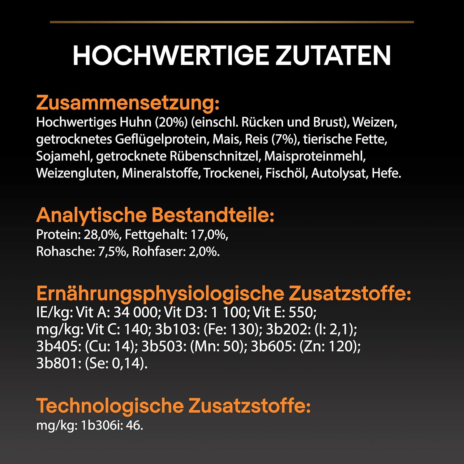 Die Formel unterstützt gesunde Gelenke und Zähne mit hochwertigen Hühnerstücken und fördert eine hohe Nährstoffaufnahme, sodass Ihr Hund mit allem versorgt wird, was er für ein gesundes Leben braucht.