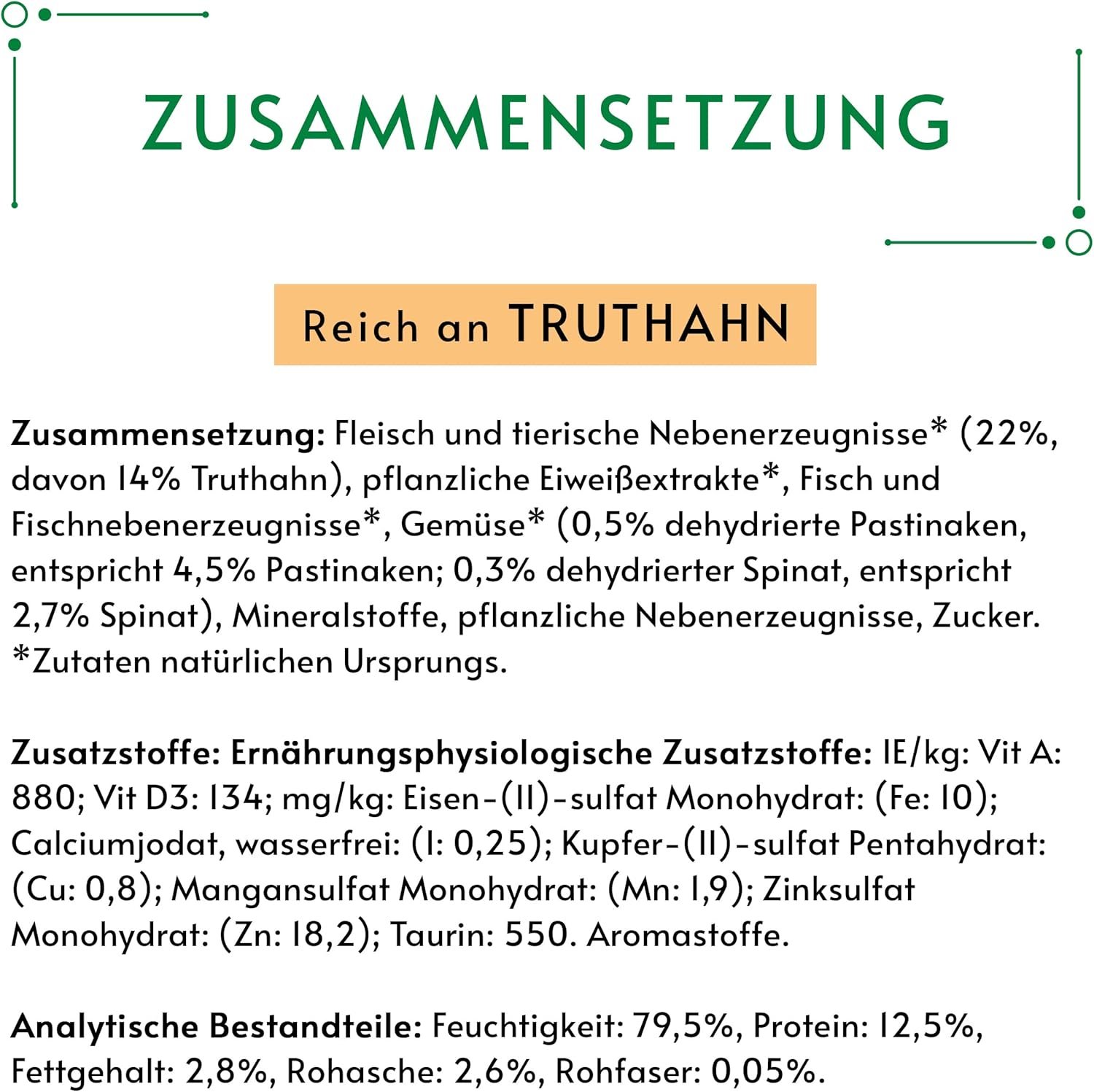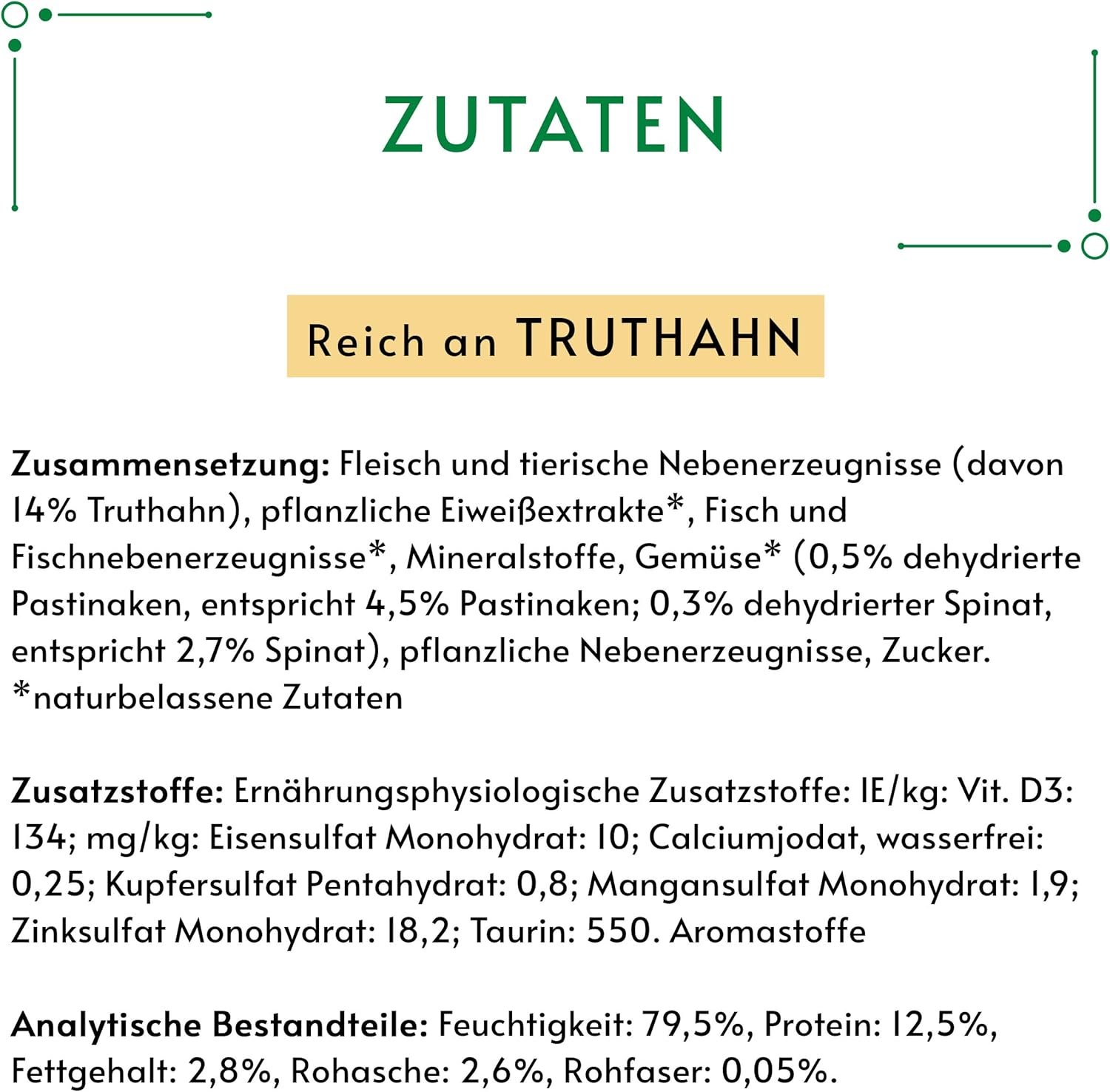 Nassfutter für Katzen mit natürlichen Zutaten – reich an Truthahn, mit feiner Gemüsebeilage aus Spinat und Pastinaken, 12 x 85 g