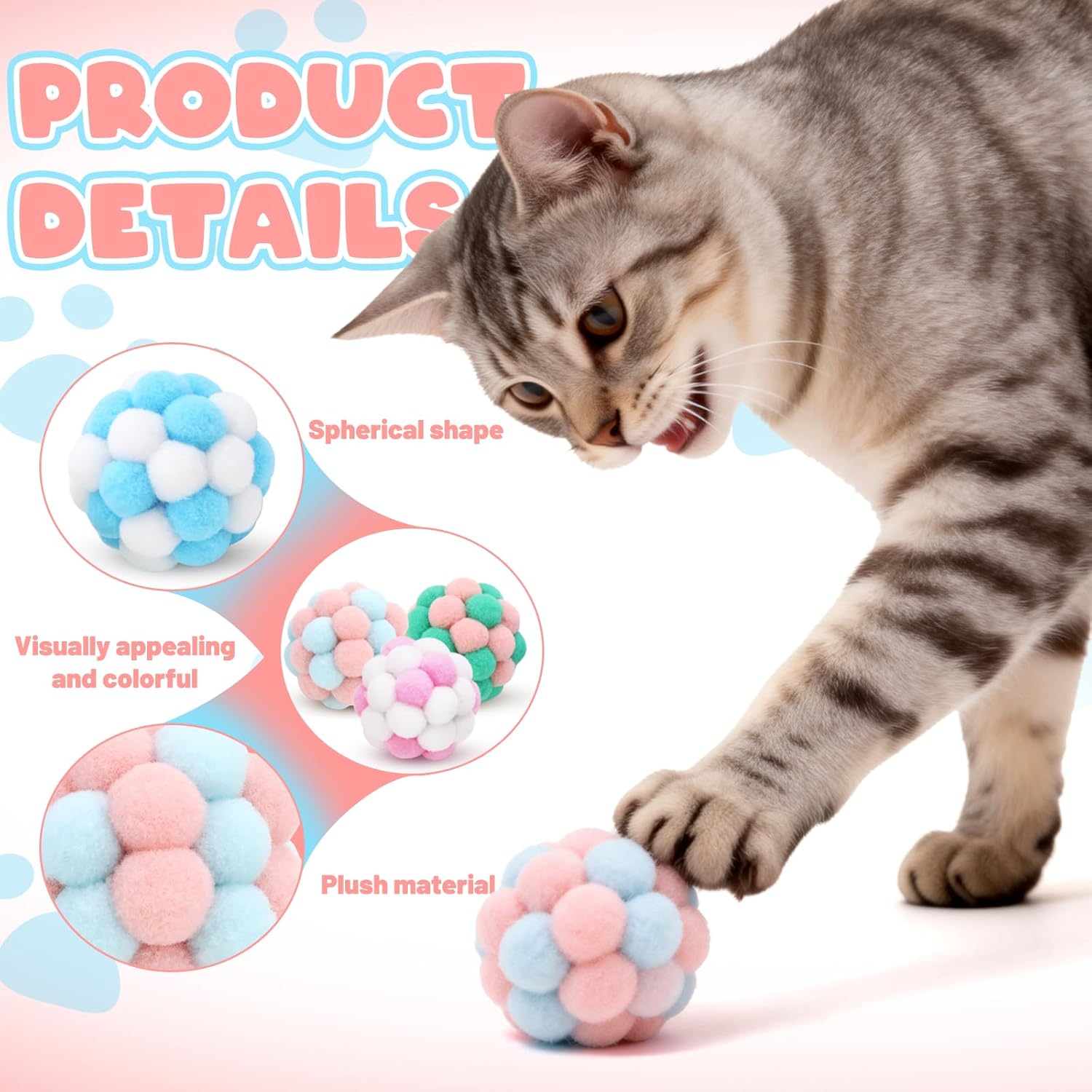 SICHER UND LANGLEBIG: Die Katzenbälle bestehen aus hochwertigem Plüschmaterial, das weich, elastisch, langlebig und bissfest ist. Es ist ungiftig, geruchlos und reizt die Haut von Haustieren nicht. Es ist sowohl für Kätzchen als auch für erwachsene Katzen geeignet.