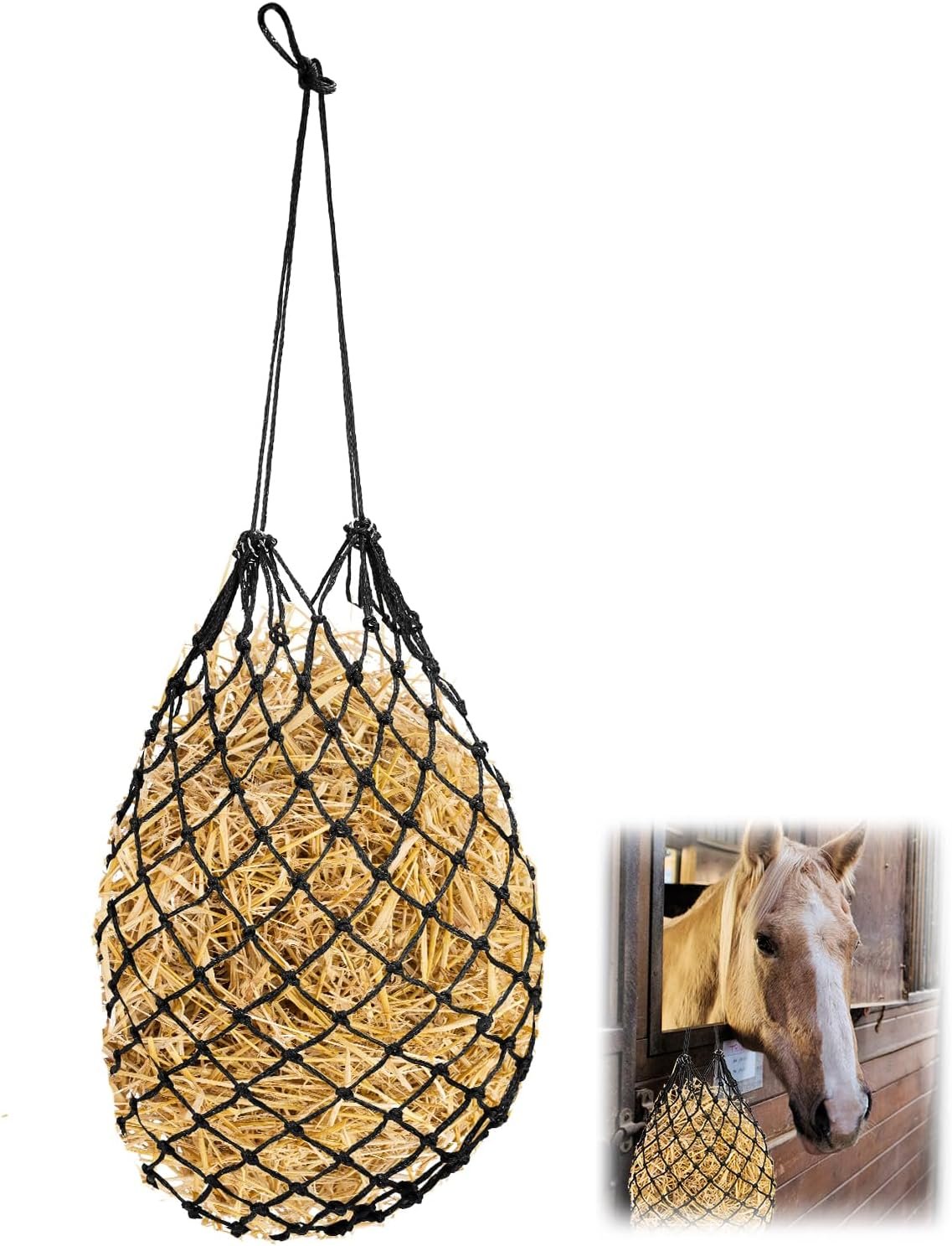 QWORK® Heunetz, 101 cm Heunetz für Pferde, engmaschiges Heunetz mit Ringen, für Rinder, Pferde