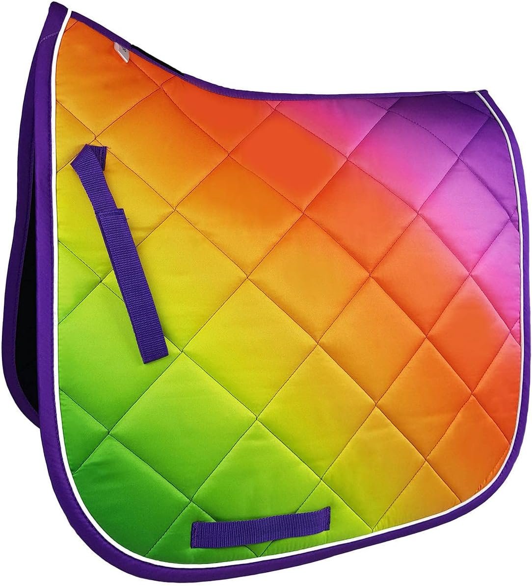 Die Dressurschabracke ist in vielen modischen Farbtönen erhältlich. Die Schabracke ist mit Coolmax gefüttert, das Feuchtigkeit besser ableitet. Die Dressurschabracke passt perfekt zur gesamten Horsenjoy Rainbow-Kollektion.