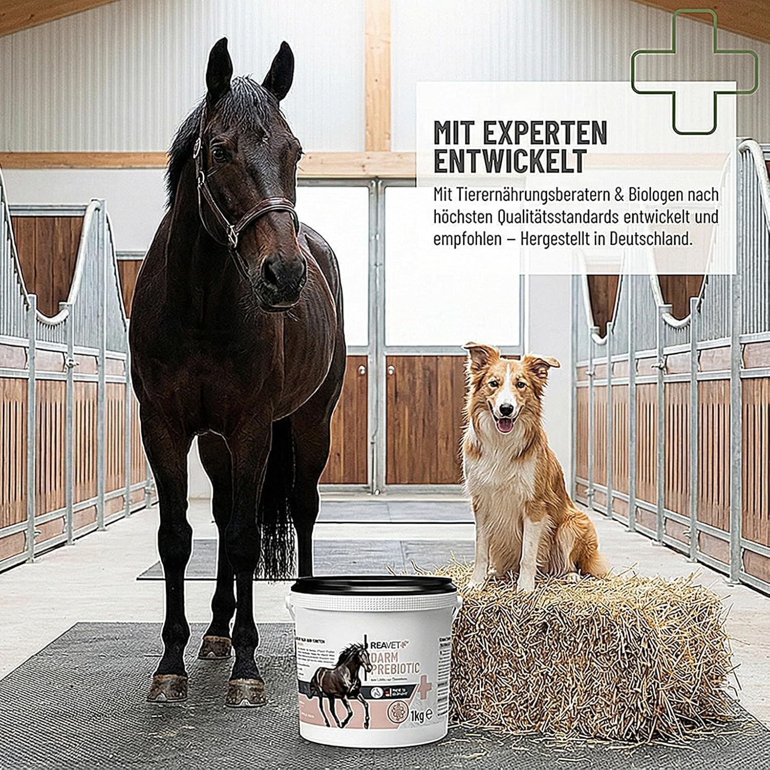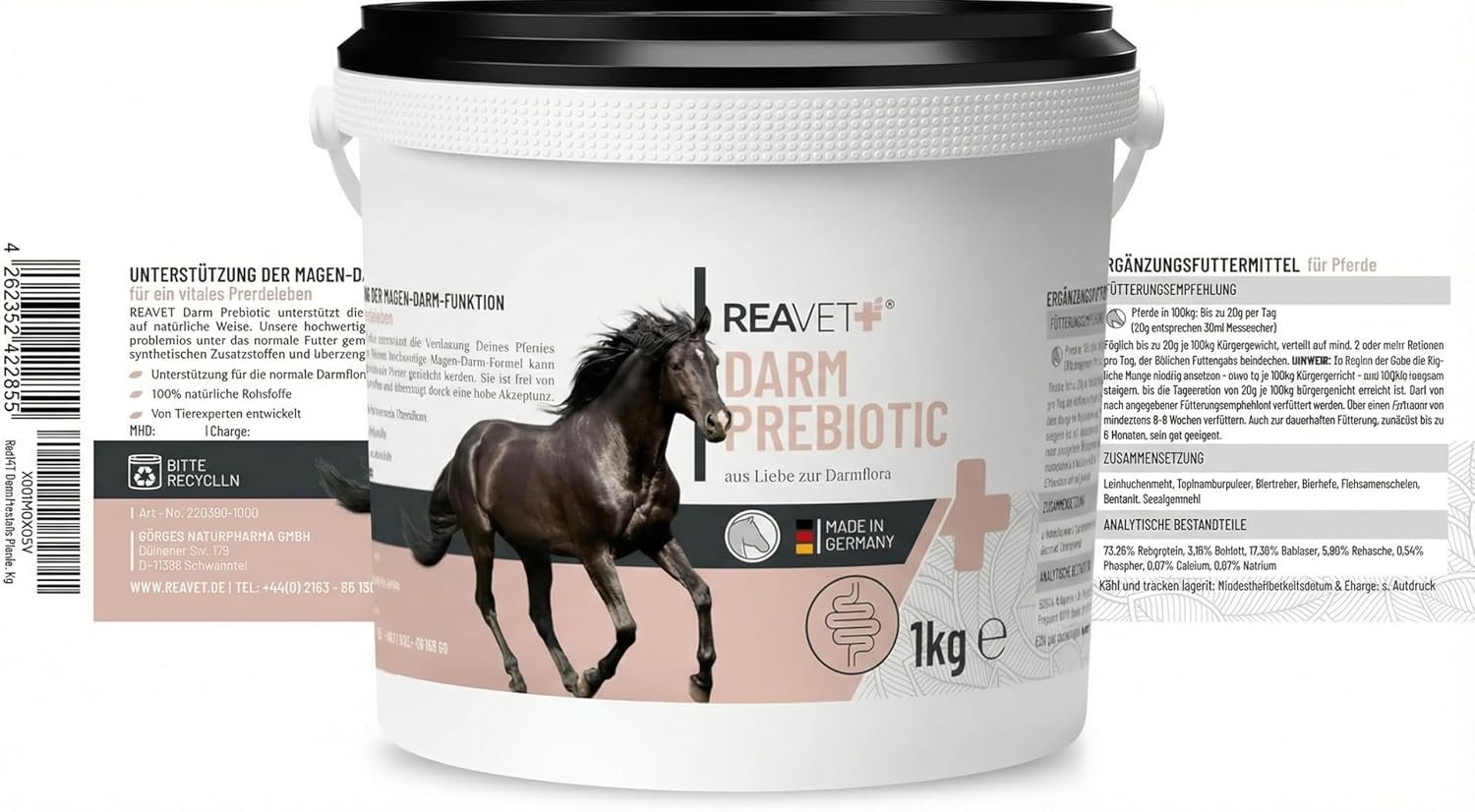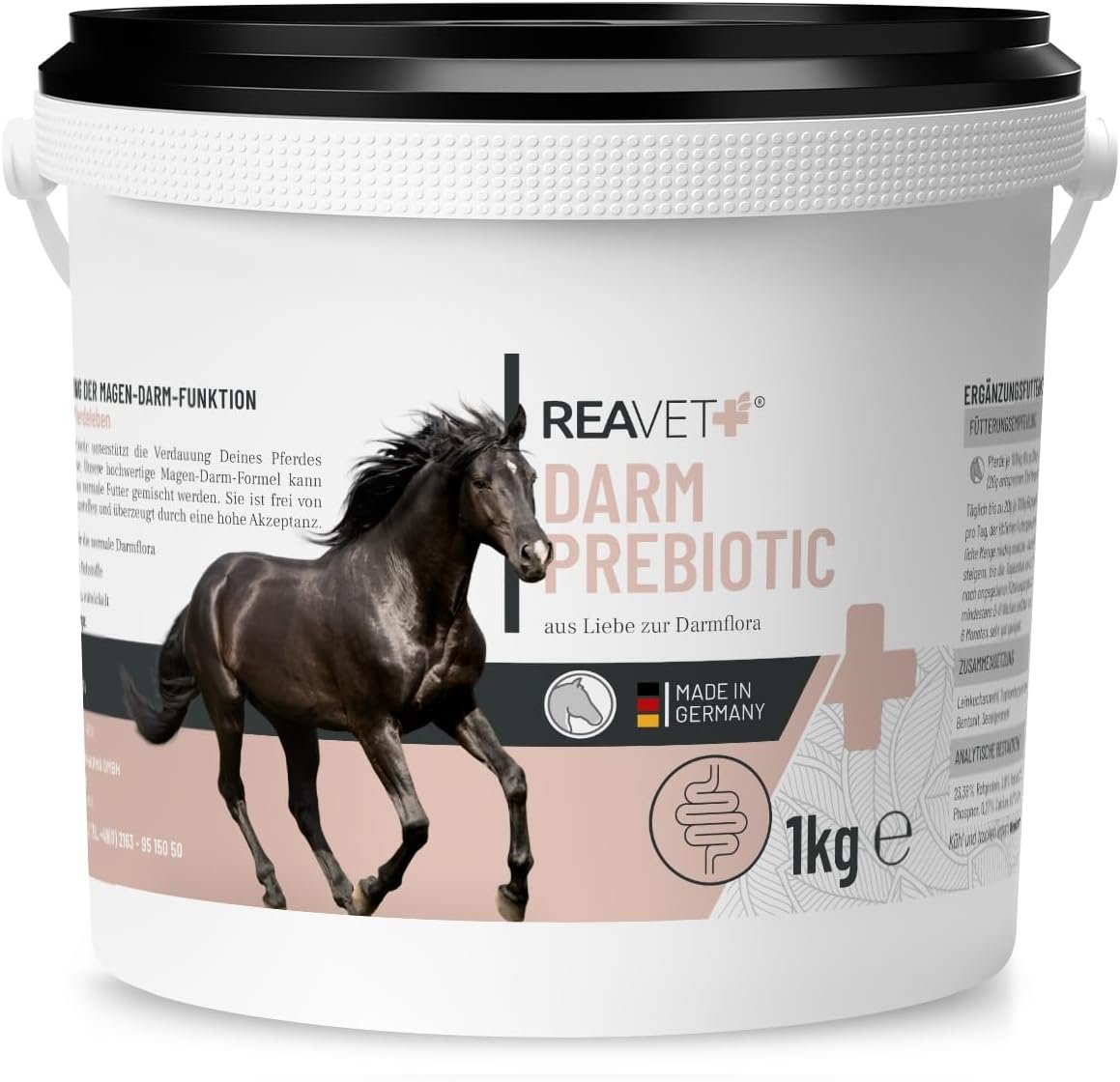 Aus Liebe zur Darmflora: ReaVET intestinal Prebiotic ist ein getreidefreies Ergänzungsfuttermittel für magenempfindliche Pferde zur ganzheitlichen Unterstützung der Darmflora und Verdauung