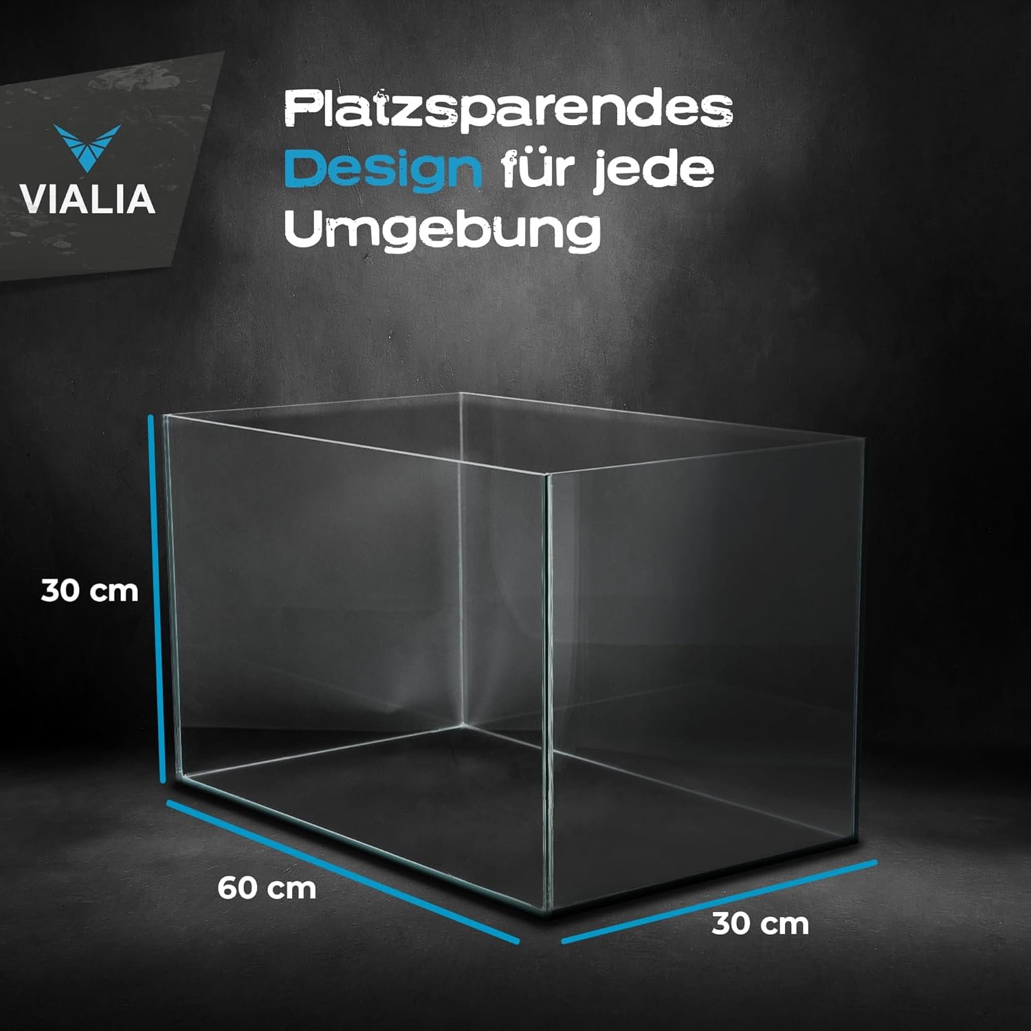 Maße und Fassungsvermögen: Dieses Aquarium im Format 60 x 30 x 30 cm bietet großzügige 54 Liter Volumen. Perfekt für Ihre individuellen Aquarienbedürfnisse.