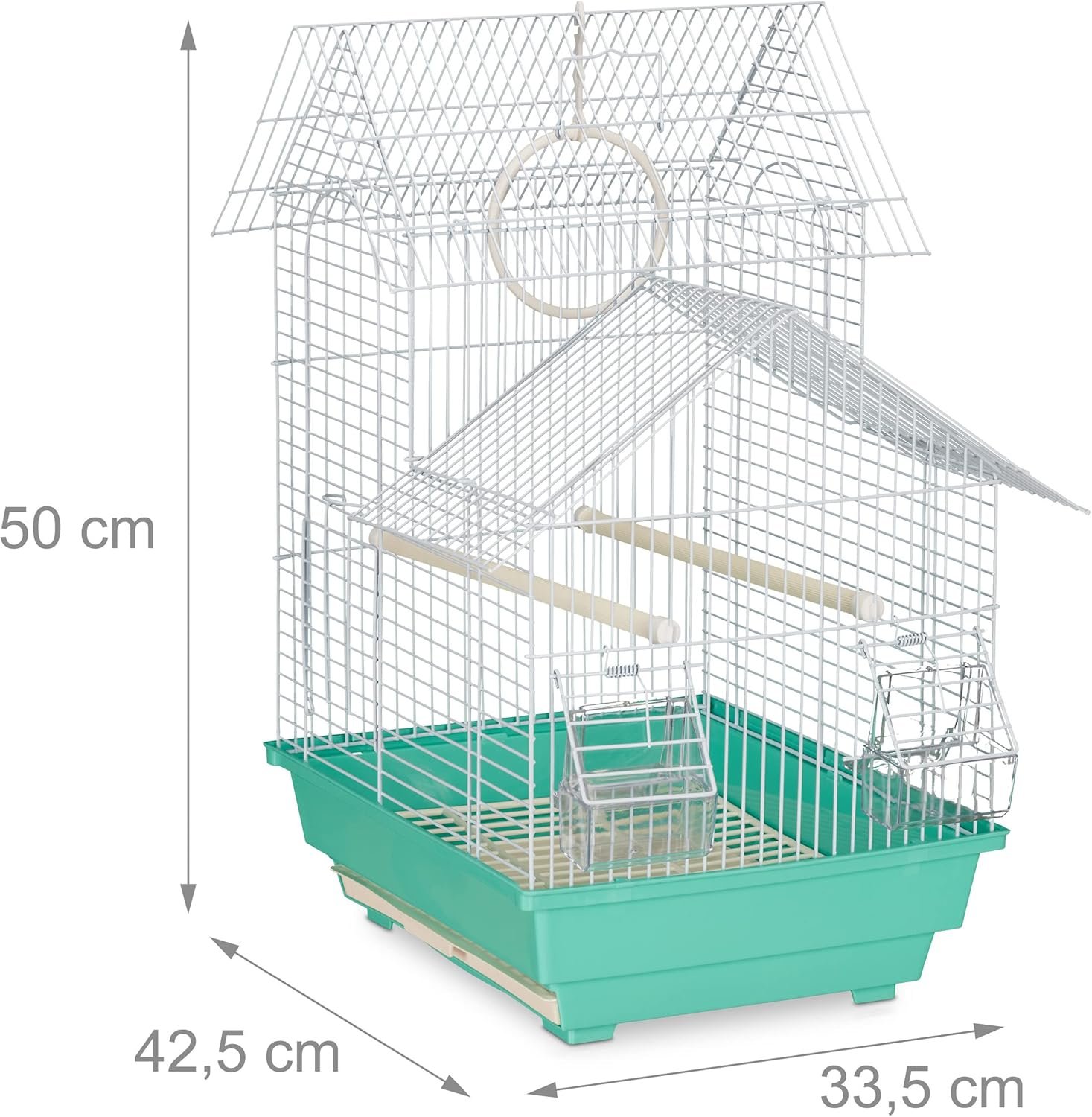 Details: Sittichkäfig mit Stahlgitter und Kunststoffschale – H x B x T: ca. 50 x 42,5 x 33,5 cm