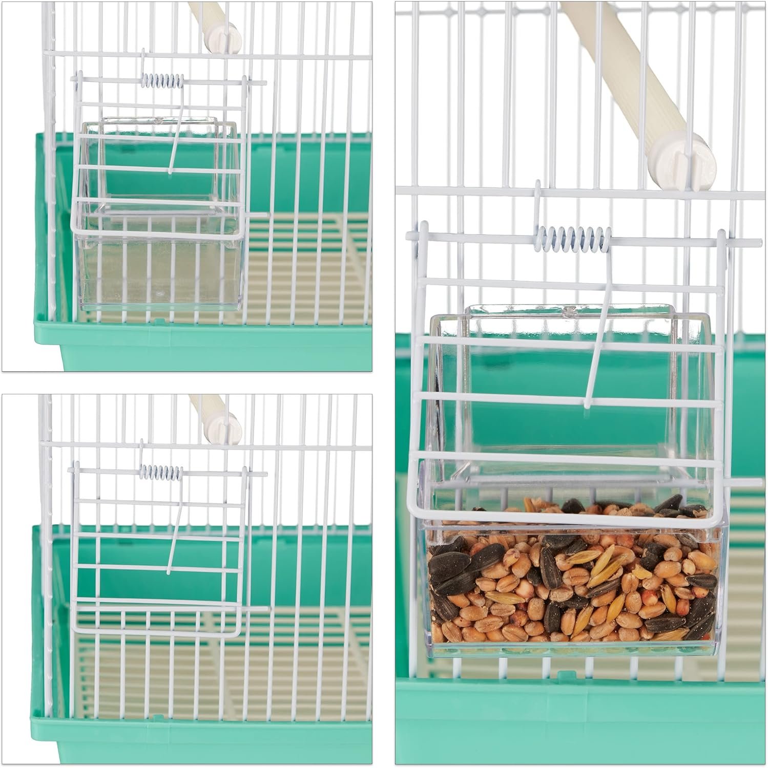 Zubehör: Vogelhalter inklusive 2 Futterhäuschen, Schmutzfänger, 2 Sitzstangen und Schaukel zum Spielen