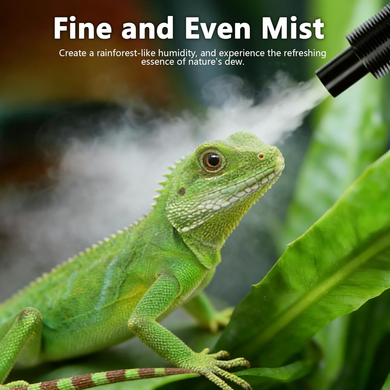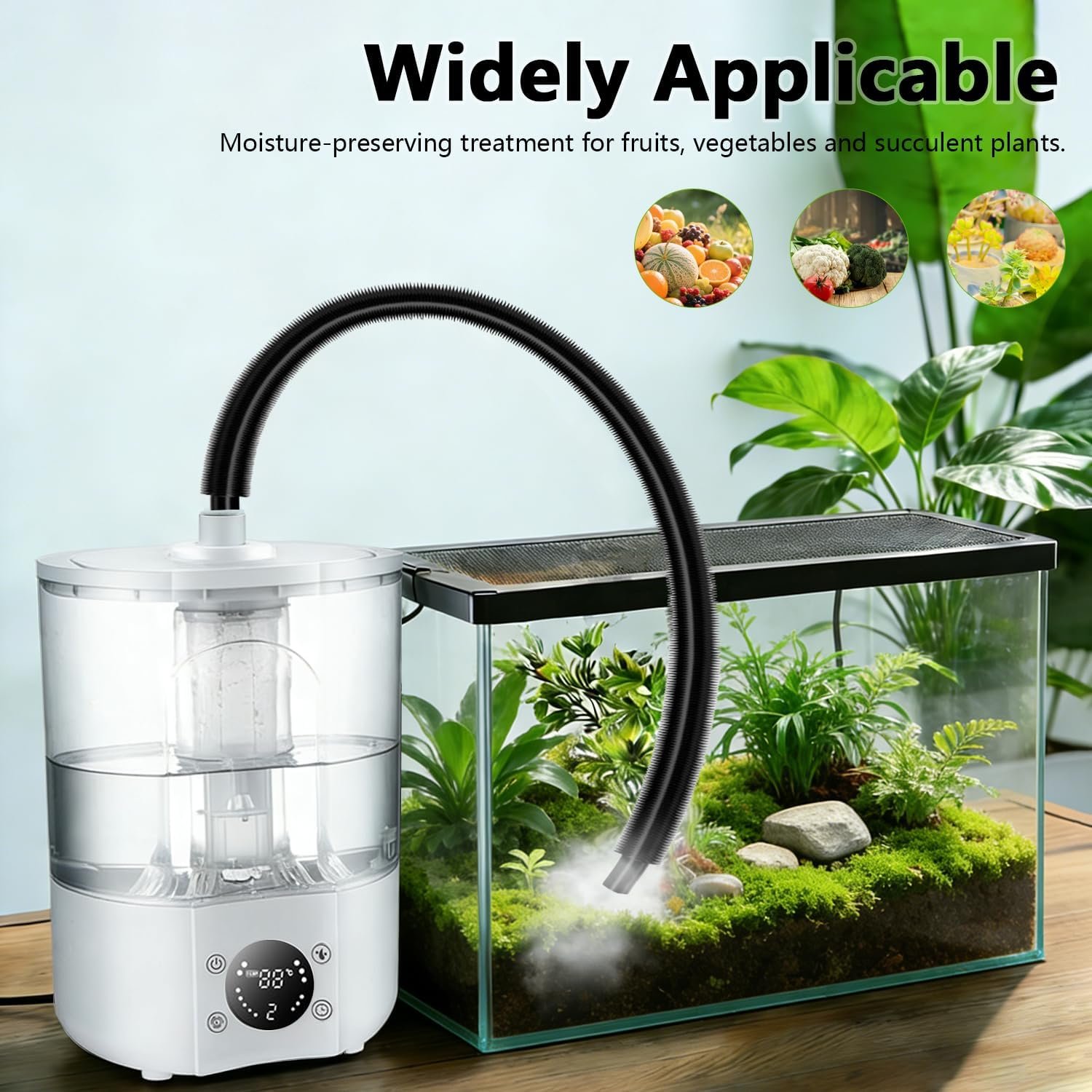 【Intelligente Luftfeuchtigkeitskontrolle】 Die automatische Überwachung rund um die Uhr hält die Luftfeuchtigkeit im optimalen Bereich von 60–90 %. Geeignet für Regenwald- und Wüstenarten. Kein manuelles Sprühen mehr erforderlich, spart Zeit und sorgt für konstante Bedingungen in Ihrem Terrarienbewässerungssystem.