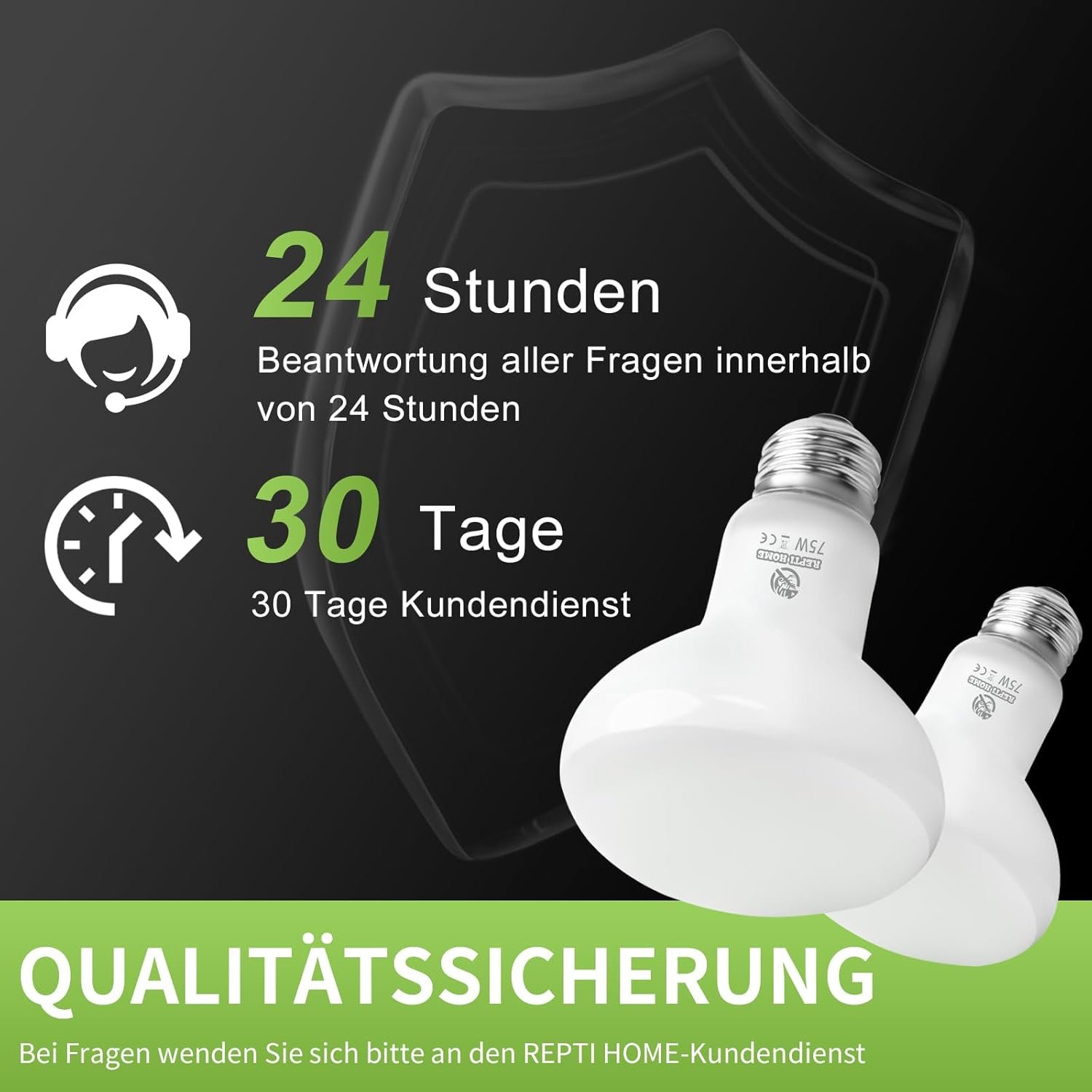 NACH DEM VERKAUF: Bedingungslose Rückerstattung für defekte Glühbirnen. Bei Bestellungen über einen Monat wenden Sie sich bitte über Amazon an den REPTI HOME-Kundendienst. Wir werden Ihnen innerhalb von 24 Stunden antworten und Ihnen weiterhelfen.