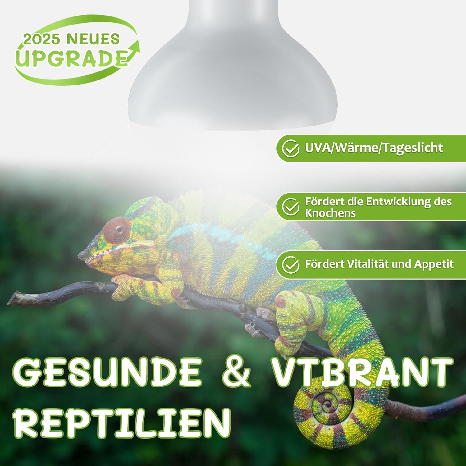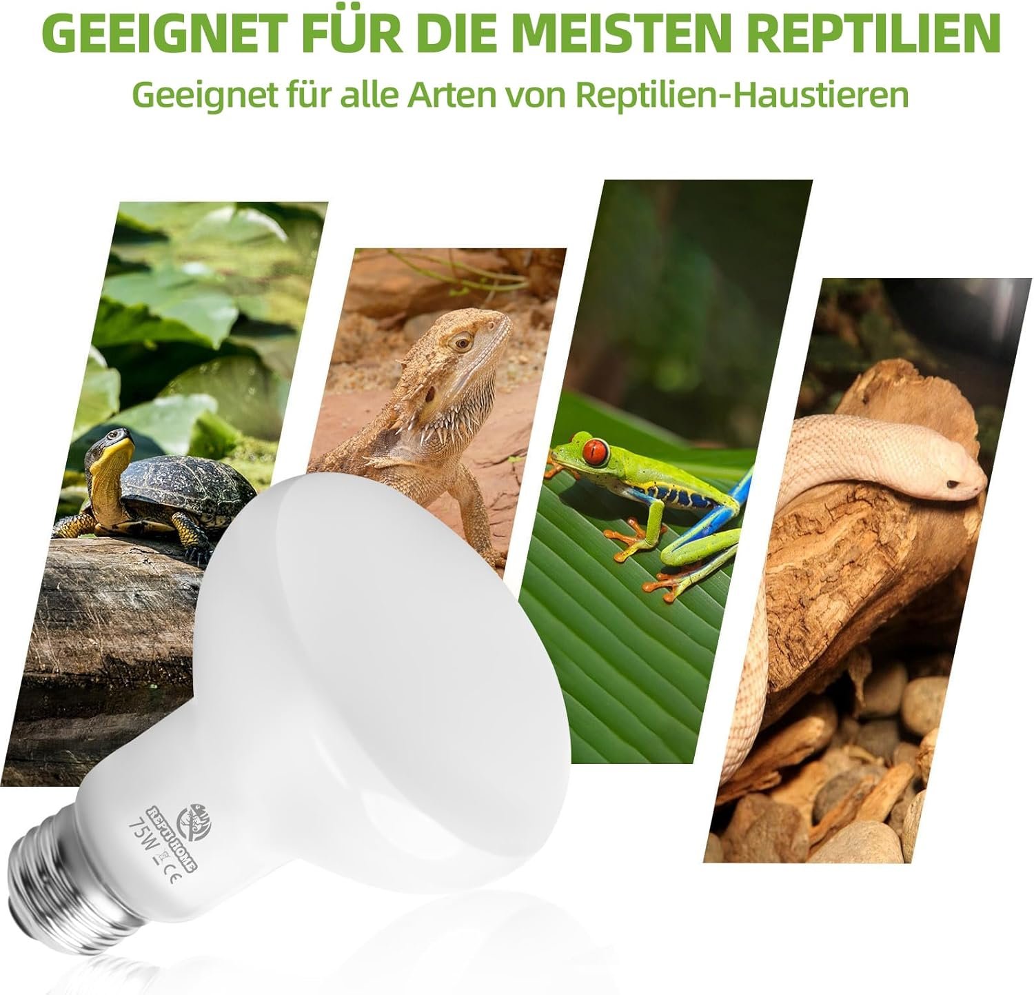 GEEIGNET FÜR VERSCHIEDENE REPTILIEN: Reptilien-Wärmelampen können ein natürlicheres Lebensumfeld schaffen, geeignet für verschiedene Reptilien oder Amphibien, einschließlich Bartagamen, Landschildkröten, Schildkröten, Eidechsen, Schlangen, Leguane, Geckos, Chamäleons, Frösche, Kröten, Hühner, Welpen, Igel, Einsiedlerkrebs