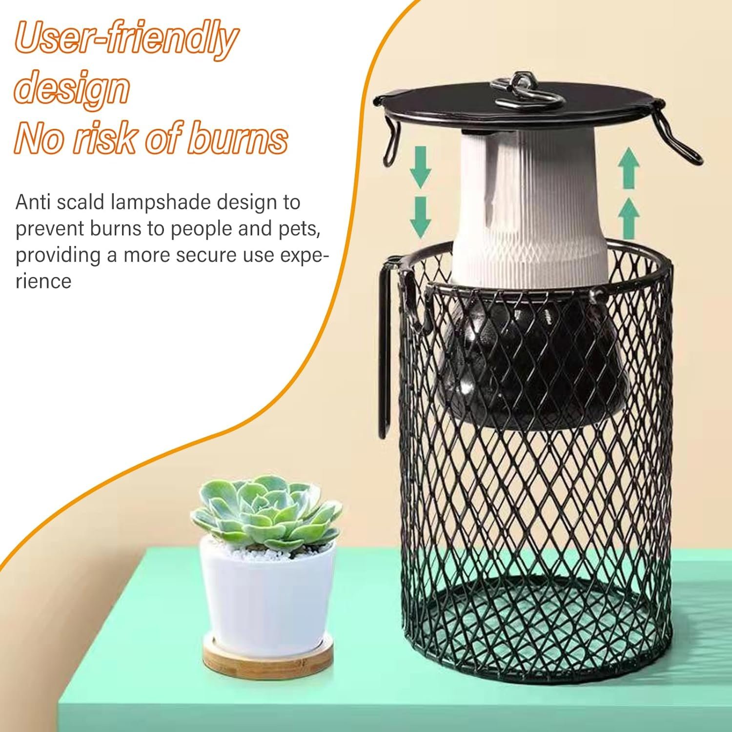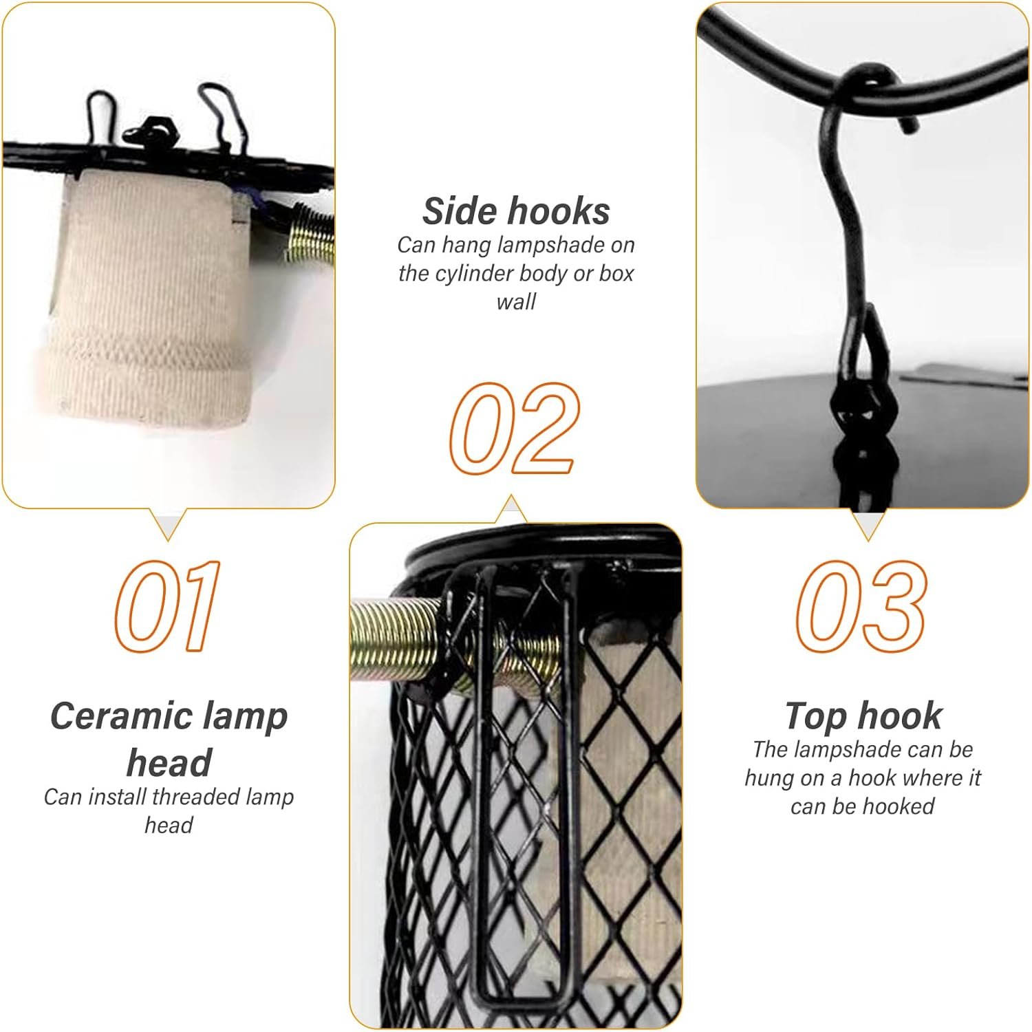 Der Lampenschutzkorb mit E27-Fassung besteht aus Eisen. Keramische Heizlampen sorgen für Rissfreiheit bei Langzeitarbeiten in Terrarien mit hoher Luftfeuchtigkeit, die beständig gegen Oxidation, Vibration, Sicherheit und Hygiene sind.