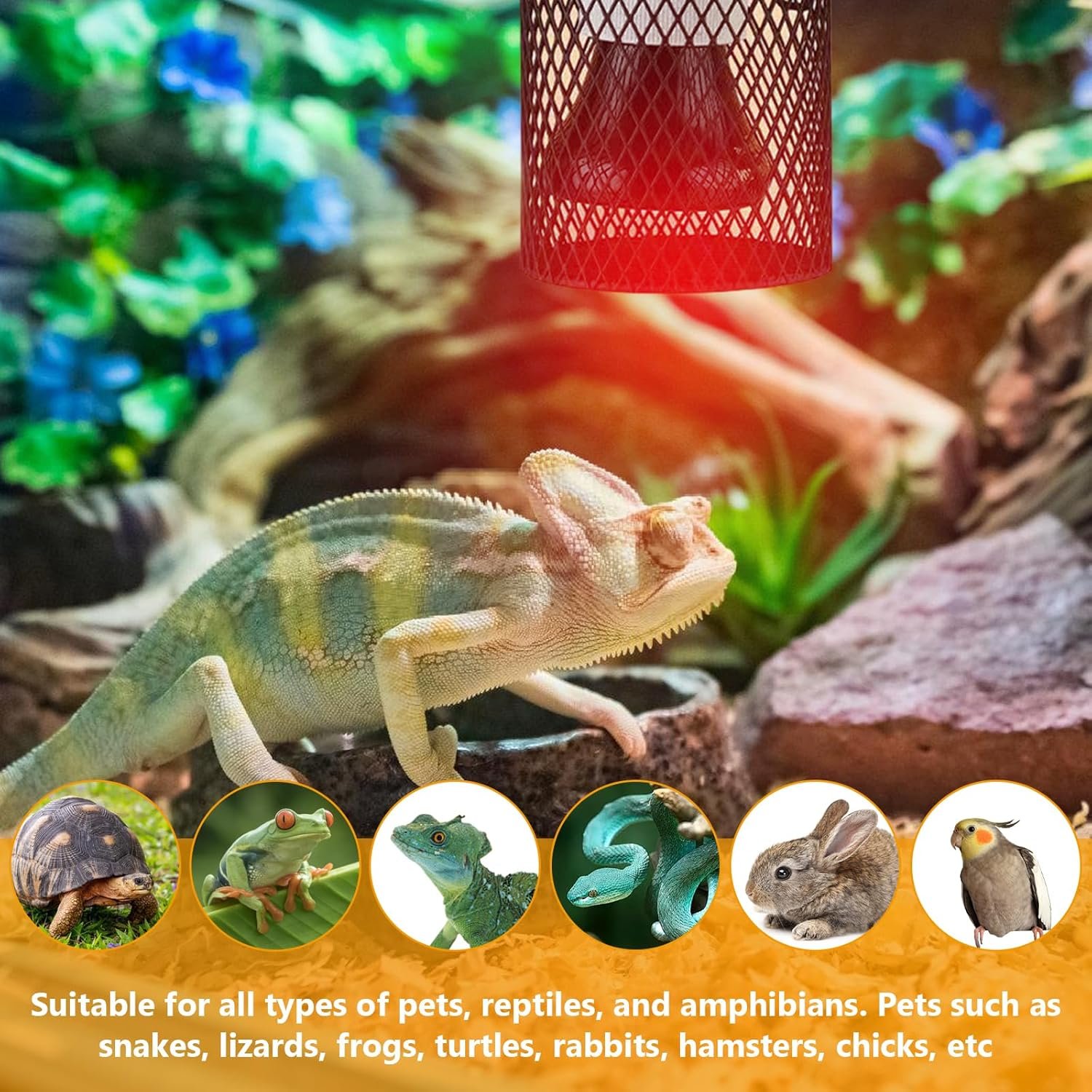 Breite Anwendung: 100 W Reptilien-Wärmelampe, bietet eine ausreichende Wärmequelle, bietet einen trockenen und bequemen Ruheplatz für Ihr krabbelndes Haustier. Reptilien-Wärmelampe für alle Arten von Haustieren, Reptilien und Amphibien. Wie Schlangen, Eidechsen, Frösche, Schildkröten, Kaninchen, Hamster, Küken und andere Haustiere