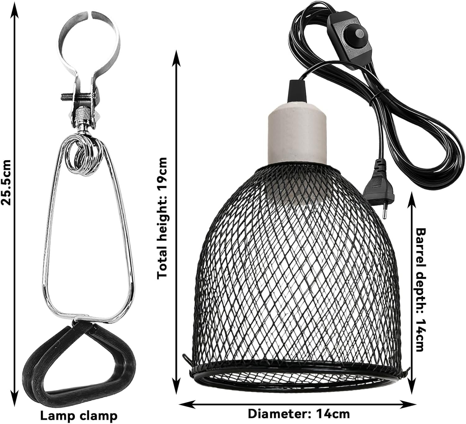 Reptilien-Wärmelampe, Wärmelampen-Terrarium mit Schutzkorb und Timer, Terrarienlampe, Reptilien-Terrarium-Lampe, Schildkröten-Wärmepunktlampe für Tiere, Schildkröte, Eidechse, Schlange, Hühner, Vögel
