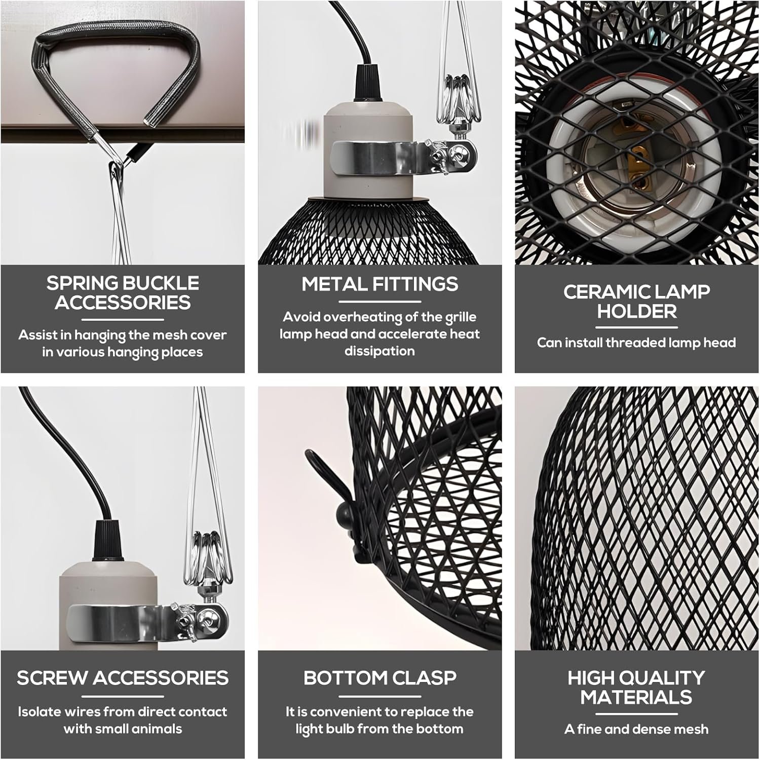 Hochwertige Materialien. Unsere Reptilien-Wärmelampe verfügt über einen hitzebeständigen Keramikkopf, der Glühbirnen mit bis zu 200 W aufnehmen kann. Die stabile Metallabdeckung schützt Tiere vor direktem Kontakt mit der Keramik-Wärmelampe, beugt Verbrennungen vor und schützt das Kabel vor Beschädigungen.