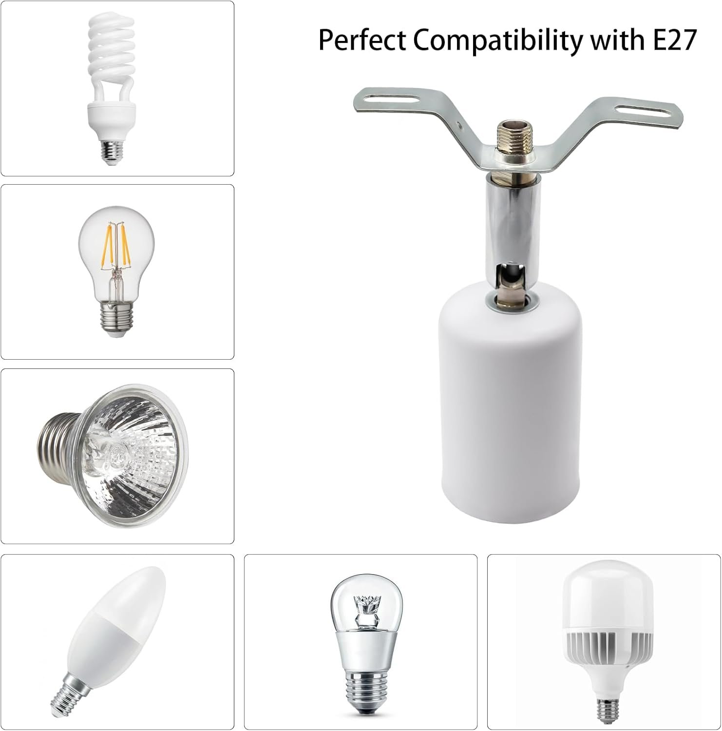 Kompatibel mit E27-Glühbirnen: Die Lampenfassung ist kompatibel mit E27-Glühbirnen, wie Keramik-Wärmelampen, Wärmelampen, UVA-, UVB-, Glühlampen-, Halogen-, LED-Lampen und so weiter. Bitte beachten Sie, dass das Kit nur die Lampenfassung enthält (Glühbirne nicht im Lieferumfang enthalten). Unterstützt eine Ausgangsleistung von bis zu 150 W.
