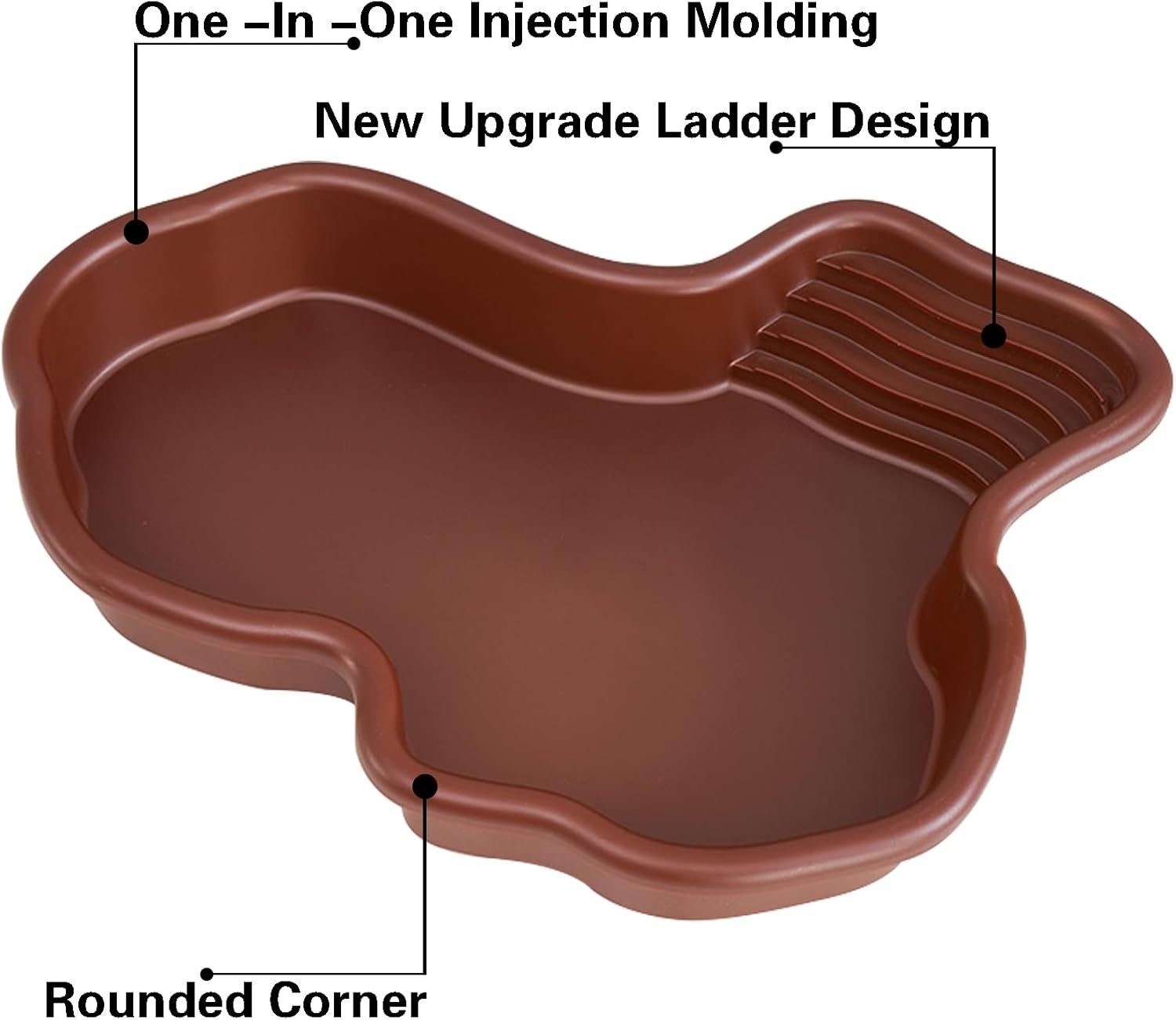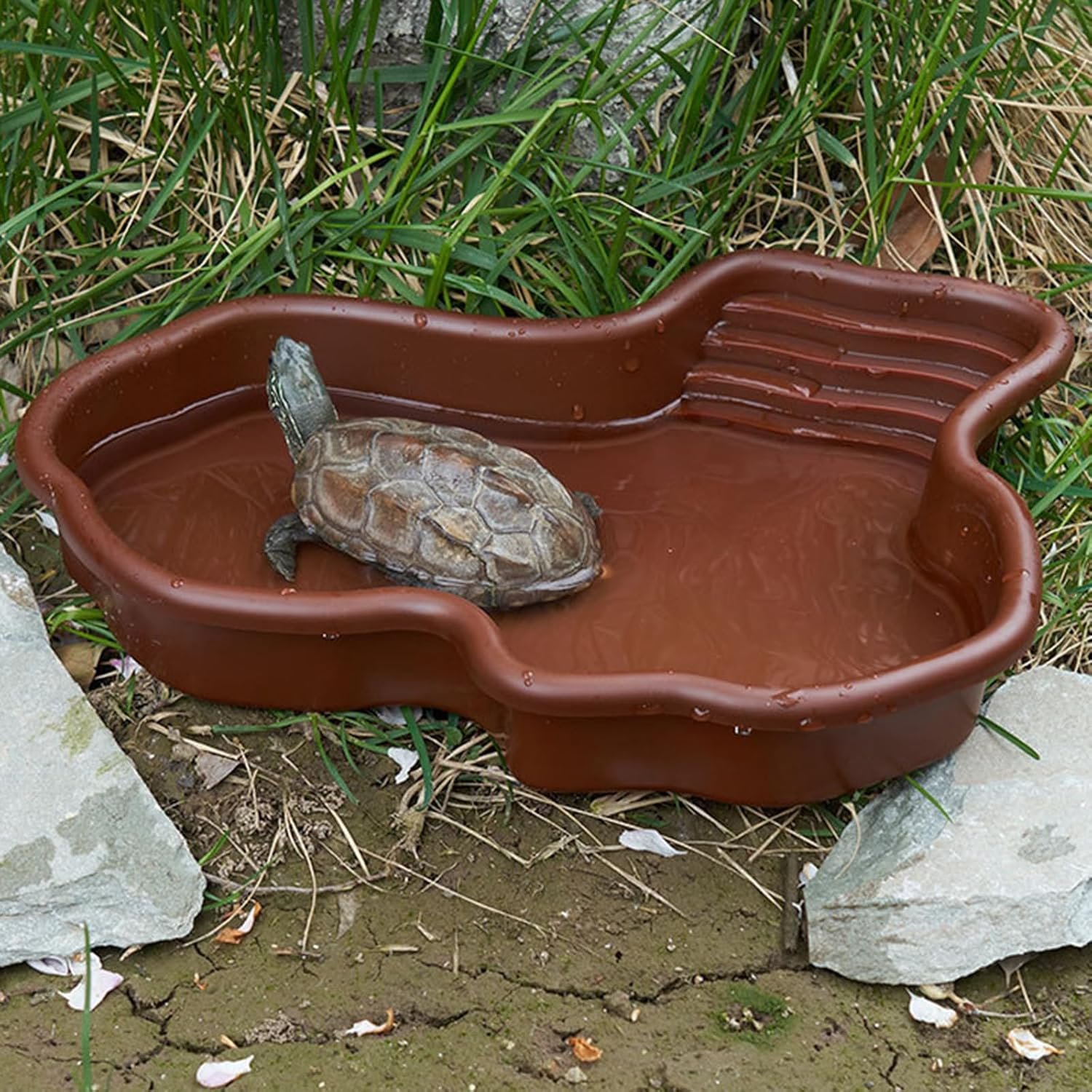 Aus haltbarem Kunststoff gefertigt, sind die Kanten abgerundet und glatt, um Verletzungen bei Schildkröten zu vermeiden. Leicht zu reinigen ohne Ecken, in denen Bakterien wachsen können.