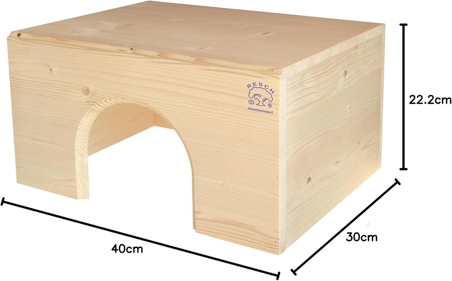 Tierart:Kaninchen, ZwergkaninchenArtikelgewicht: 2,21 kg. Produktabmessungen: 40 x 30 x 22,2 cm (L x B x H). Maße des Eingangs: ca. 16 x 15 cm (B x H). Herstellerreferenz: Resch 13Materialzusammensetzung: 100 % Fichtenholz. Holzstärke: 12 mm. Produktmenge: 1