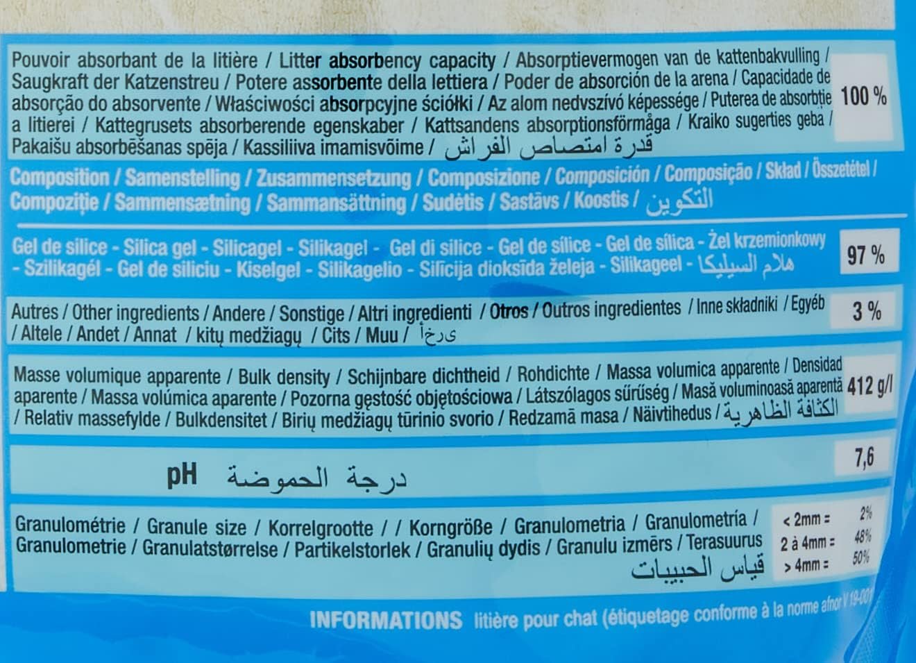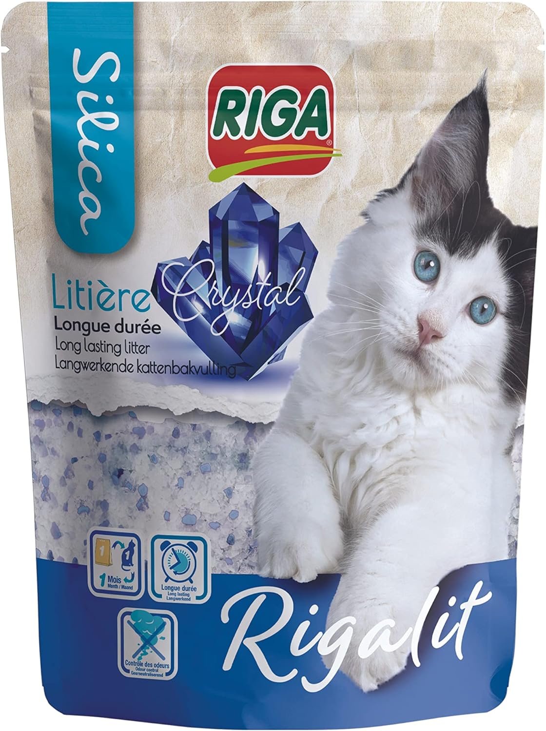Riga Lit Crystal ist eine Katzenstreu mineralischen Ursprungs auf Basis von Kieselgel, die für ihre hohe Absorptionsfähigkeit bekannt ist. Diese Katzenstreu neutralisiert schlechte Gerüche. Es verhindert die Vermehrung von Bakterien, die für die Entstehung schlechter Gerüche verantwortlich sind. Ein Beutel Katzenstreu für eine Katze reicht für etwa 1 Monat. Legen Sie eine 3-4 cm dicke Schicht in die Katzentoilette. Feste Ausscheidungen täglich entfernen. Mischen Sie die Katzenstreu regelmäßig, um ihre Wirksamkeit zu erhöhen. Erneuern Sie die gesamte Katzentoilette, sobald die Flüssigkeit nicht mehr aufgenommen wird. Riga wurde 1954 in Nordfrankreich aus Leidenschaft für Haustiere gegründet. Spielzeug, Leckerlis, Pflege und Futter – unsere Haustiere, ob mit Fell oder Federn, werden glücklich sein und jeden Tag eine engere Beziehung zu ihren Besitzern aufbauen.