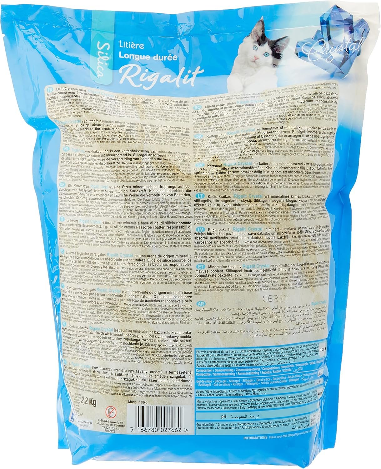 HYPERABSORBIERENDES KATZENSTREU: Rigalit Crystal ist ein Katzenstreu mineralischen Ursprungs auf Basis von Kieselgel, das für seine hohe Absorptionsfähigkeit bekannt ist. Ideal zum Aufsaugen von Flüssigkeiten und Feuchtigkeit.
