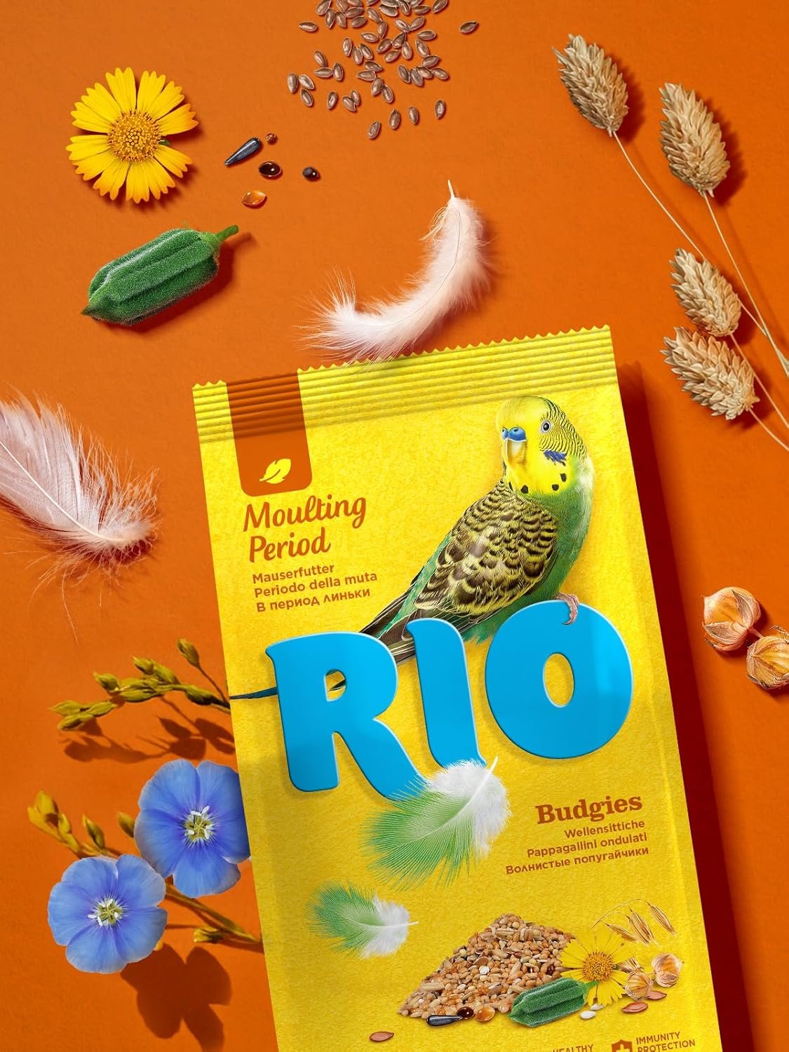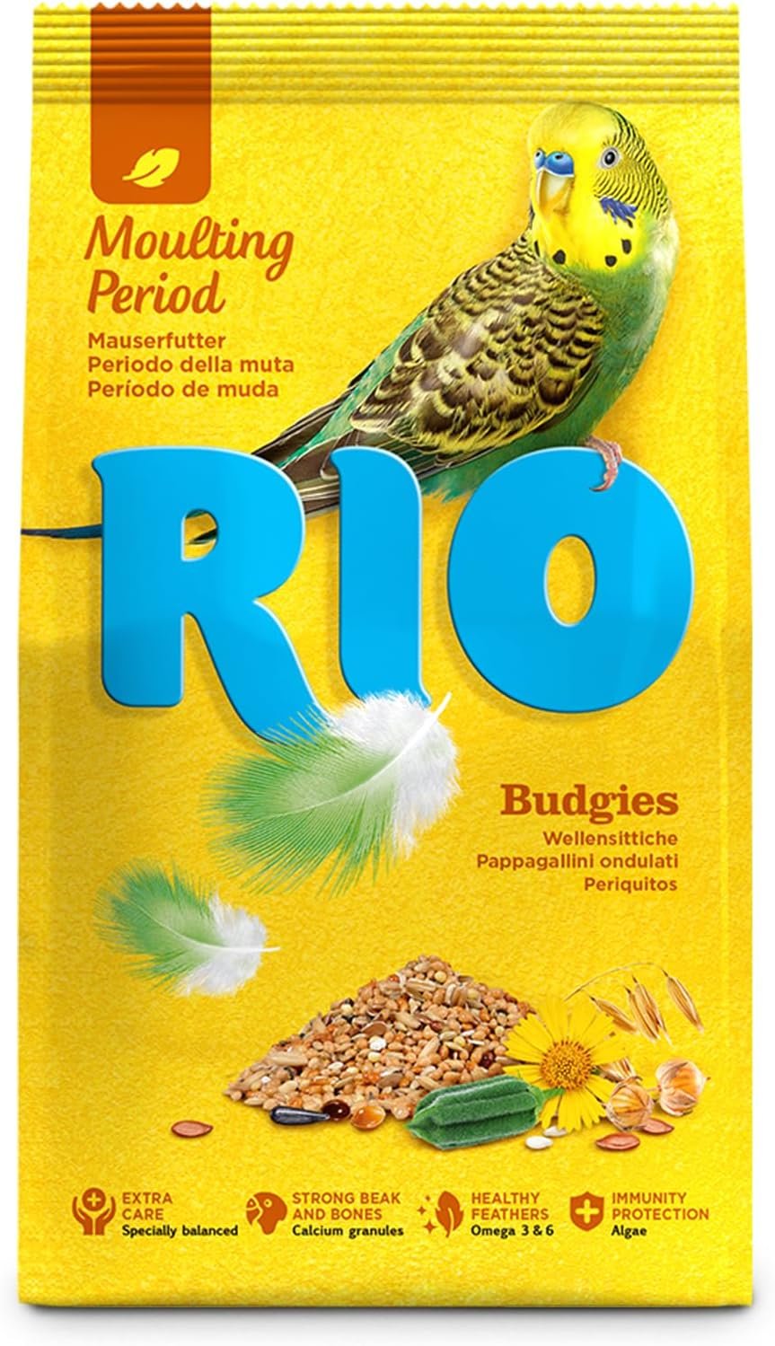 Alleinfuttermittel für Wellensittiche: Der erhöhte Gehalt an Proteinen und Fetten im RIO-Alleinfuttermittel für Wellensittiche kann den Prozess des Federwechsels erleichtern