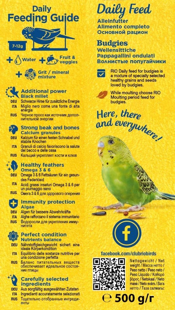 RIO Komplettfutter für Wellensittiche ist eine speziell zusammengestellte Mischung aus ausgewählten, gesunden und beliebten Samen und Getreidesorten für Wellensittiche. Die Vielfalt der Zutaten gewährleistet die Versorgung mit den notwendigen Nährstoffen.