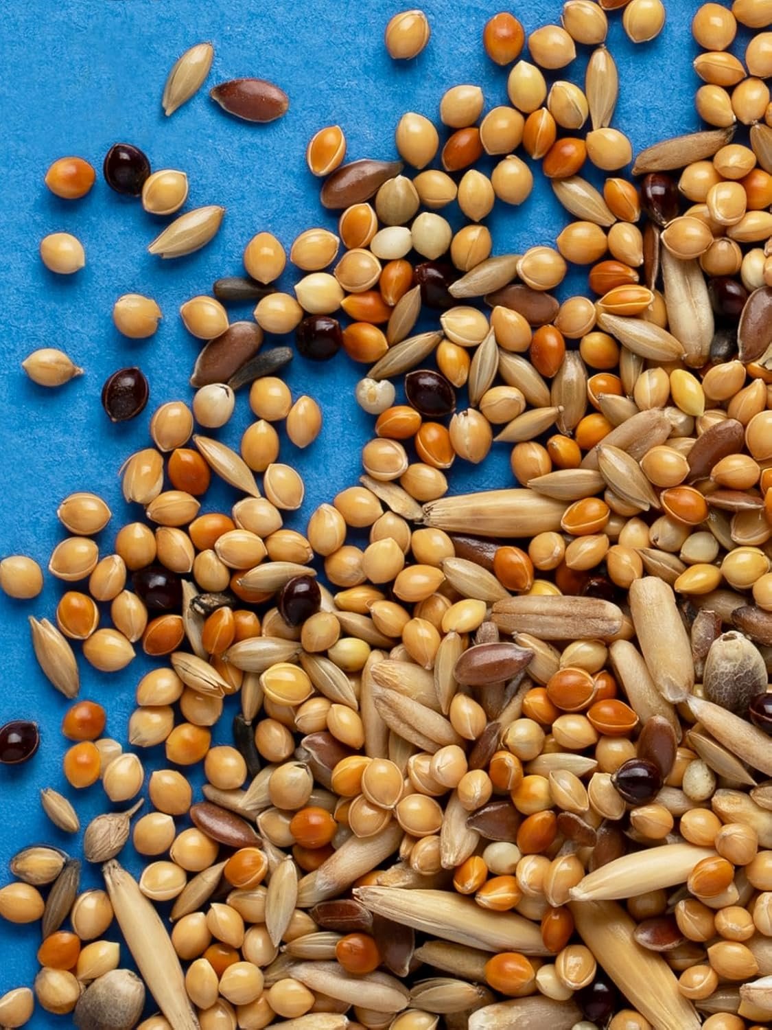 Verschiedene Samen – die Mischung aus gelber und roter Hirse, Kanariensamen und Hafer kann eine ausgewogene Ernährung Ihrer Wellensittiche unterstützen.