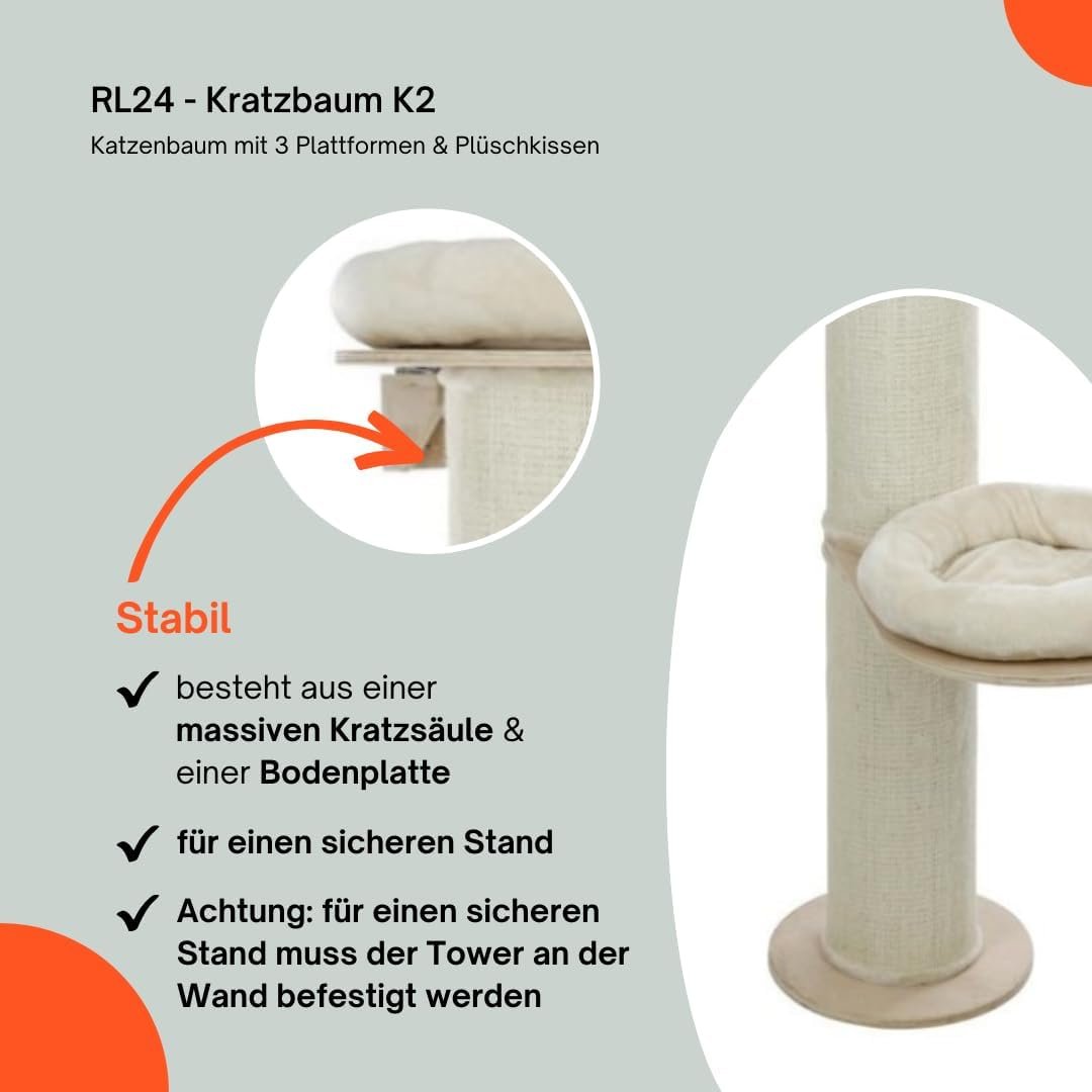 RL24 – Kratzbaum K2 – Katzenbaum mit 3 Plattformen & Plüschkissen