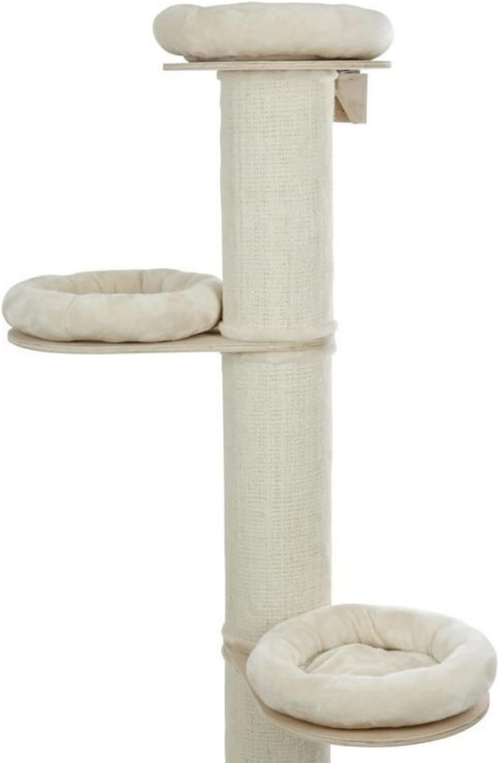 massive Kratzsäule Katzenmöbel zum Befestigen an der Wand für mehr Stabilität mit Bodenplatte und drei Liegeflächen Plüschkissen ø 40 cm mit Klettband, abnehmbar Kissen waschbar bei 30 °C Sisalteppich an den Säulen verklebt Maße: Höhe: 187cm / Durchmesser Bodenplatte: 38 cm / Kratzstamm ø 22cm Farbe: Beige (ist auch in der Farbe Grau erhältlich)