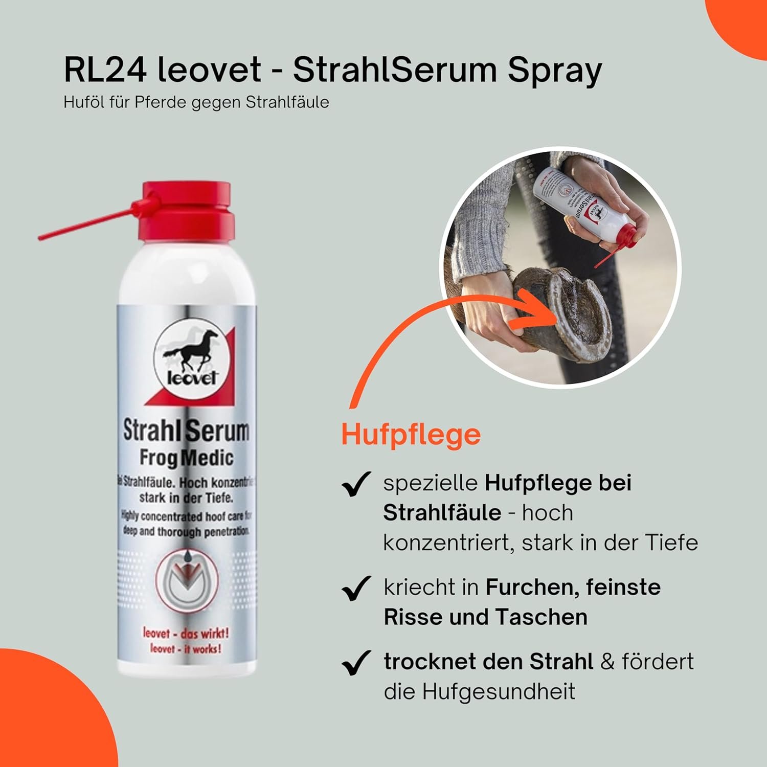 Gegen den Strahlfäule: Kriecht in Furchen, feinste Ritzen und Taschen und dringt in verfaulte Stellen ein, trocknet den Strahl, so dass gesundes Gewebe nachwachsen kann