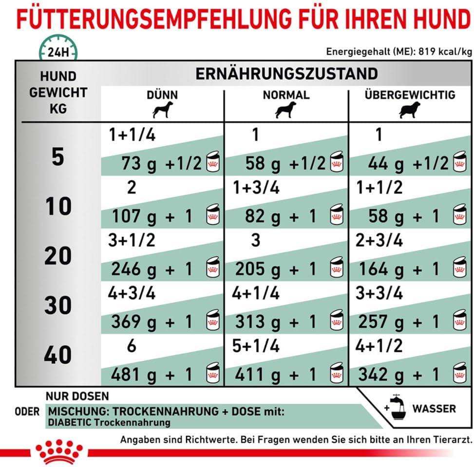 Royal Canin Diabetic Special Low Carbohydrate ist eine ausgewogene und nährstoffreiche Formel, die speziell zur Regulierung des Blutzuckerspiegels bei erwachsenen Hunden mit Zuckerkrankheiten entwickelt wurde. Glukomodulation bedeutet, dass das Futter einen direkten Einfluss auf den Blutzuckerspiegel eines Hundes haben kann. Eine geeignete Ernährung mit viel Eiweiß, wenig Stärke und angepasstem Ballaststoffgehalt kann dabei helfen, den Anstieg des Blutzuckerspiegels nach dem Essen zu minimieren. Bei Hunden mit Diabetes ist eine gesunde Muskelmasse besonders wichtig. Mit einem hohen Proteingehalt kann diese Formel zum Aufbau und Erhalt gesunder Muskelmasse beitragen. Diese Formel mit reduziertem Stärkegehalt unterstützt die Kontrolle eines postprandial erhöhten Blutzuckers bei Hunden mit Diabetes.