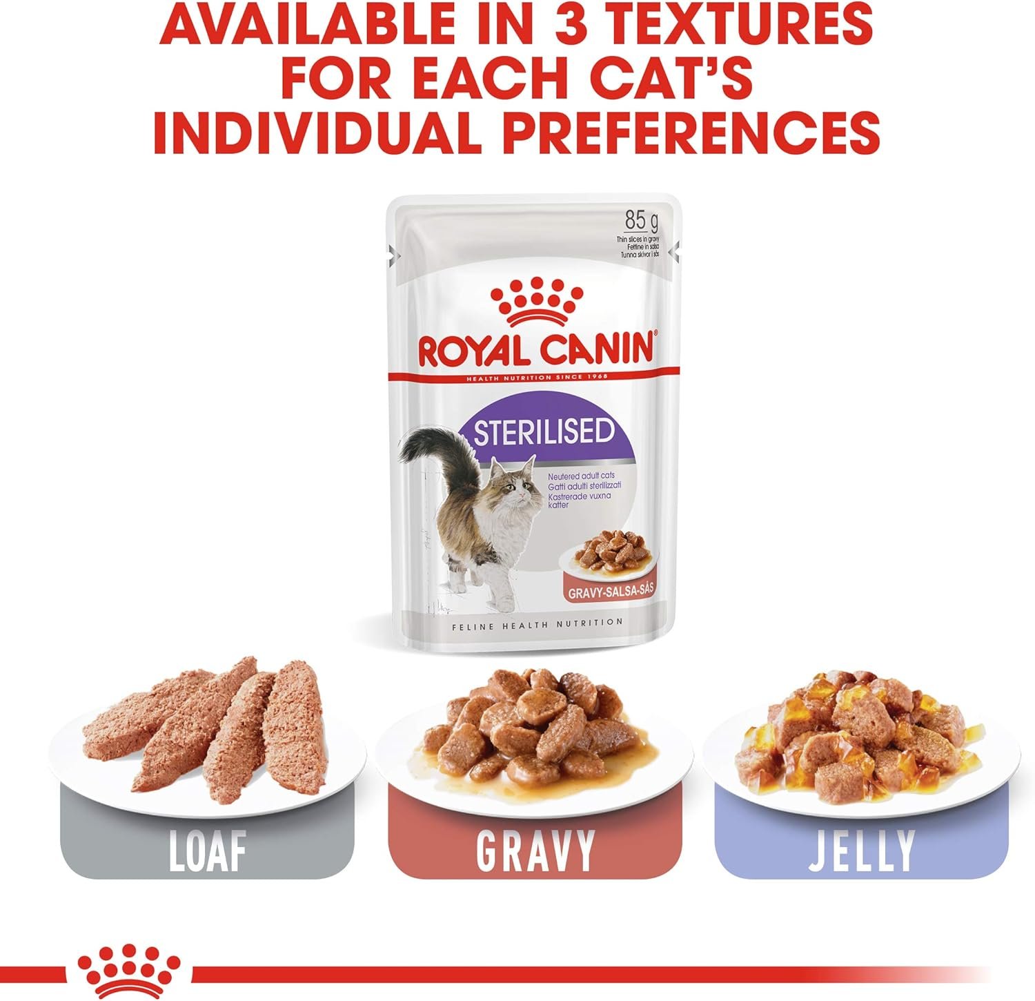 Die Kastration ist ein lebensverändernder Prozess, der auch Auswirkungen auf das Verhalten und den Energiebedarf einer Katze haben kann. ROYAL CANIN Sterilised in Sauce ist speziell auf die Ernährungsbedürfnisse einer erwachsenen, kastrierten Katze abgestimmt. Mit einem kontrollierten Energiegehalt kann ROYAL CANIN Sterilized Ihre Katze dabei unterstützen, ihr Idealgewicht zu halten und der Entwicklung von Übergewicht vorzubeugen. ROYAL CANIN Sterilised in Sauce zeichnet sich außerdem durch einen ausgewogenen Mineralstoffgehalt aus, der die Gesundheit der Harnwege von Katzen fördert. Um den individuellen Vorlieben jeder Katze gerecht zu werden, ist ROYAL CANIN Sterilised auch als Mousse oder Gelee sowie als Trockenfutter in Form leckerer Kroketten erhältlich. Wenn Sie eine Mischfütterung von Trocken- und Nassfutter in Betracht ziehen, befolgen Sie einfach unsere Fütterungsrichtlinien, um sicherzustellen, dass Ihre Katze die richtige Menge an Nass- und Trockenfutter erhält.