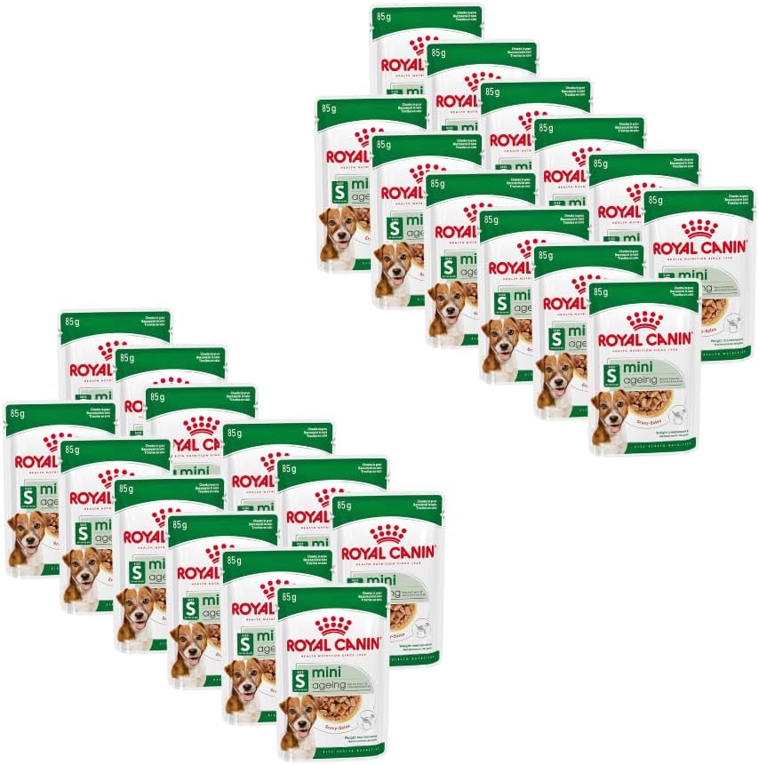 Royal Canin Mini Aging 8+ ist ein Alleinfuttermittel, das speziell für kleine ältere Hunde ab 8 Jahren entwickelt wurde. Dieses Nassfutter in Soße ist nährstoffreich und ausgewogen, um den besonderen Bedürfnissen Ihres kleinen Hundes gerecht zu werden. Der angepasste Kaloriengehalt trägt dazu bei, das Idealgewicht zu halten und den Energiebedarf zu decken. Die Formel enthält eine ausgewogene Mischung aus Vitaminen und Nährstoffen, die zur Unterstützung normaler Knochen beitragen. Durch die Anreicherung mit EPA und DHA wird die natürliche Vitalität Ihres Hundes gefördert. Die Nährstoffe unterstützen zudem die normale Haut- und Fellstruktur. Royal Canin Mini Aging 8+ ist auch in trockener Form erhältlich und ermöglicht so eine gemischte Fütterung. Diese Kombination kann zu einer normalen Zahnpflege beitragen und dazu beitragen, dass Ihr Hund ausreichend Flüssigkeit aufnimmt. Die Qualität der Lebensmittel wird durch umfangreiche Qualitätskontrollen und die Verpackung unter Schutzatmosphäre sichergestellt. Unser wissenschaftliches Team entwickelt Rezepturen, die den besonderen Nährstoffbedürfnissen älterer Hunde gerecht werden und dabei auf hochwertige Inhaltsstoffe und Umweltverträglichkeit achten. Fütterungsempfehlung: Bitte beachten Sie die auf der Verpackung angegebene Mengenangabe und passen Sie die Fütterung individuell an die Bedürfnisse Ihres Hundes an.