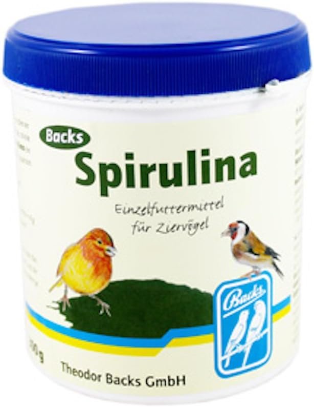 Backs Spirulina ist zweifellos eines der wertvollsten Naturprodukte, die wir kennen. Spirulina enthält Aminosäuren, Mineralstoffe und Spurenelemente sowie die Vitamine des B-Komplexes in hoher Konzentration. Dies macht Spirulina zu einem sehr guten Produkt sowohl für die Zucht, die Aufzucht, die Ausstellungssaison als auch für die Mauser. Analytische Inhaltsstoffe/Inhaltsstoffgehalt: 65 % Rohprotein 7,2 % Rohasche 5,3 % Rohfett Anwendungshinweise/Hinweise zur richtigen Verwendung: Backs Spirulina wird an das Futter gebunden oder in das Eifutter bzw. Keimfutter eingemischt. Während der Zucht, Aufzucht, Ausstellungszeit und Mauser 2 x pro Woche 8 g an 1 kg Futter anbinden oder die entsprechende Menge in das Ausgangs- oder Eifutter mischen. 1 gestrichener Messlöffel = 4 g. An einem kühlen und trockenen Ort aufbewahren. Nettogewicht: 300 g, Hersteller-Nr. DE-NI-2-00024