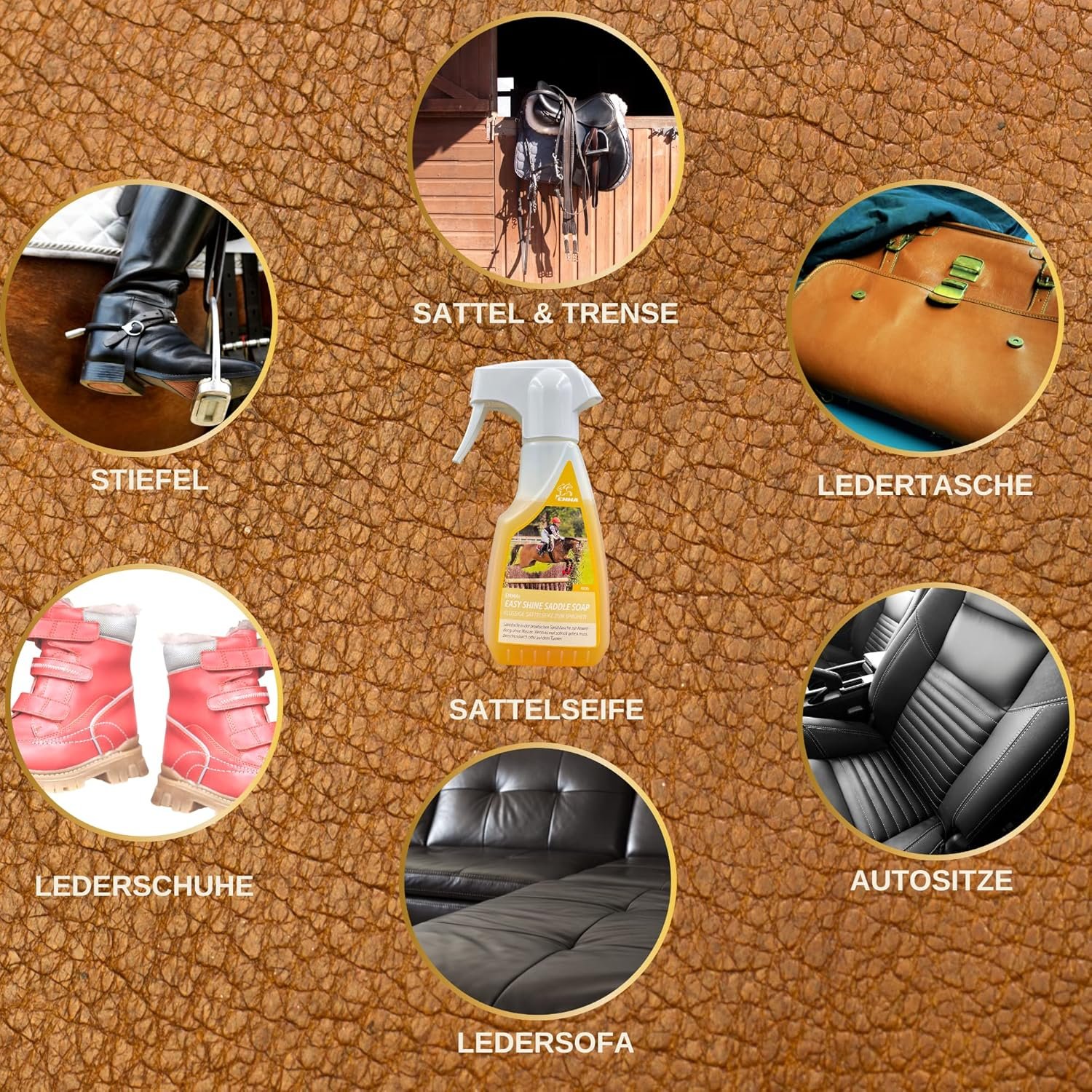 Leather care set for leather grease protects against cracking I care product leather grease with nourishing oils I spray quick and easy to use I rub leather to clean and remove dirt with a soft cloth or sponge I leather care for leather products: saddles dog leash bridle motorcycle clothing shoes bags riding boots shoes riding saddles car leather car seat furniture leather shoes leather bags leather bags leather accessories etc. I I also as a leather care Set