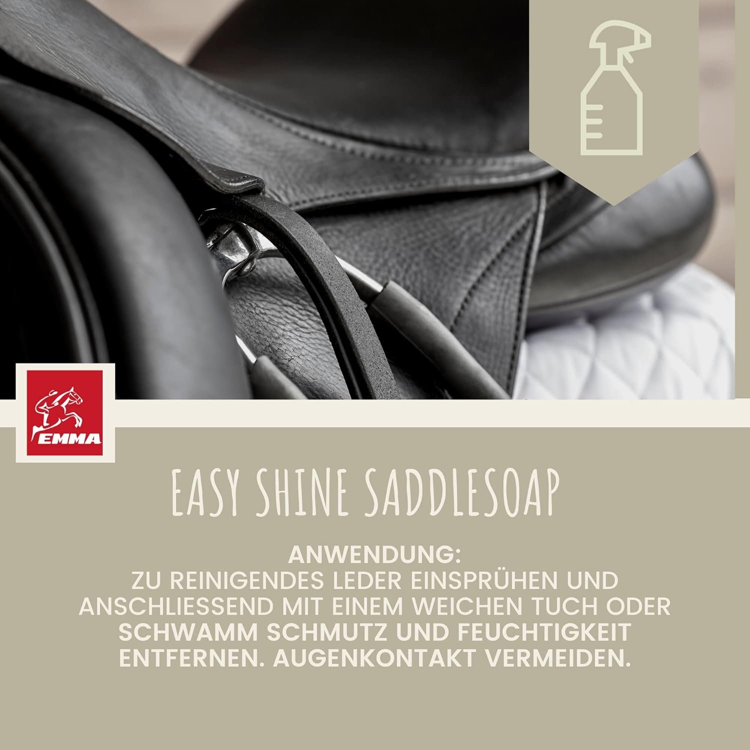 Saddle soap balm, longlife saddle care, liquid leather care in equestrian sports, apply the colourless leather grease saddle with a sponge or leather brush, application without the additional use of water, easier to use as a leather soap, saddle grease, leather spray, saddle oil, leather oil with beeswax conditioner cloths for thorough cleaning, saddle soap makes saddles, riding saddle, bridle leather soft again and protects against colour fading. & before drying out nung