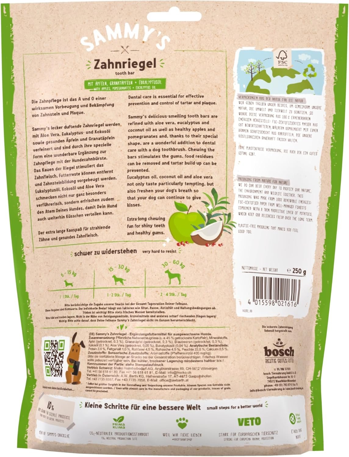 Sammy’s lecker duftende Zahnriegel werden mit Aloe Vera, Eukalyptus- und Kokosöl sowie gesunden Äpfeln und Granatäpfeln verfeinert und sind durch ihre spezielle Form eine wunderbare Ergänzung zur