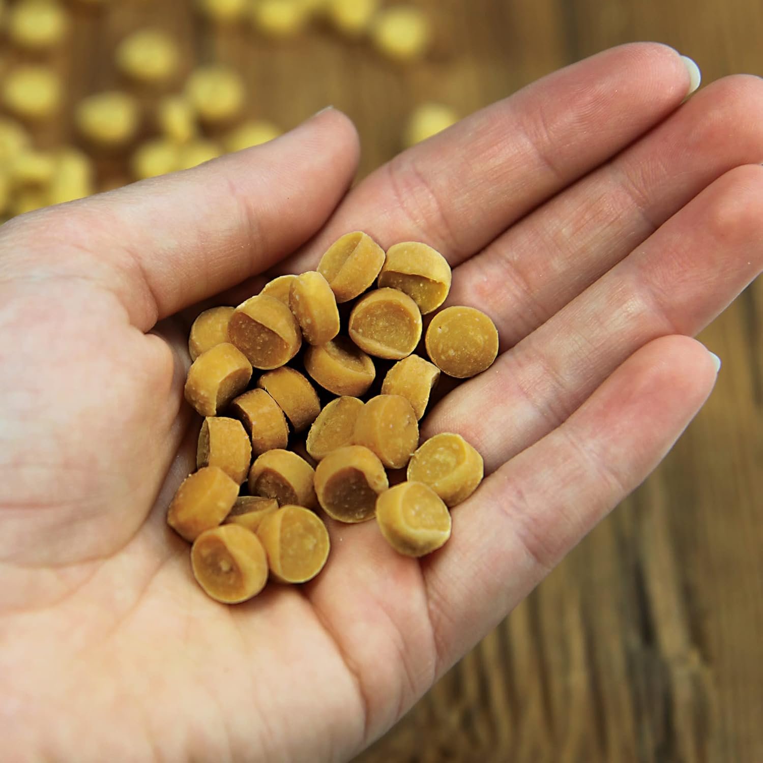 Leckere, kleine, weiche Tropfen. Glutenfrei, auf Kartoffelbasis und getreidefrei. Fettarm, taschentauglich und eine tolle Belohnung für Groß und Klein.