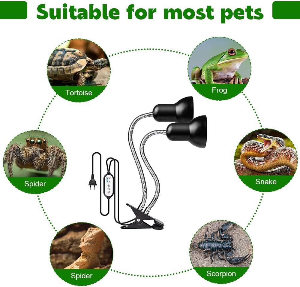 – Die Reptilien-Wärmelampe eignet sich sehr gut für Reptilien und Amphibien, einschließlich Schildkröten, Eidechsen, Schlangen, Bartagamen, Frösche, Leguane, Schildkröten usw.
