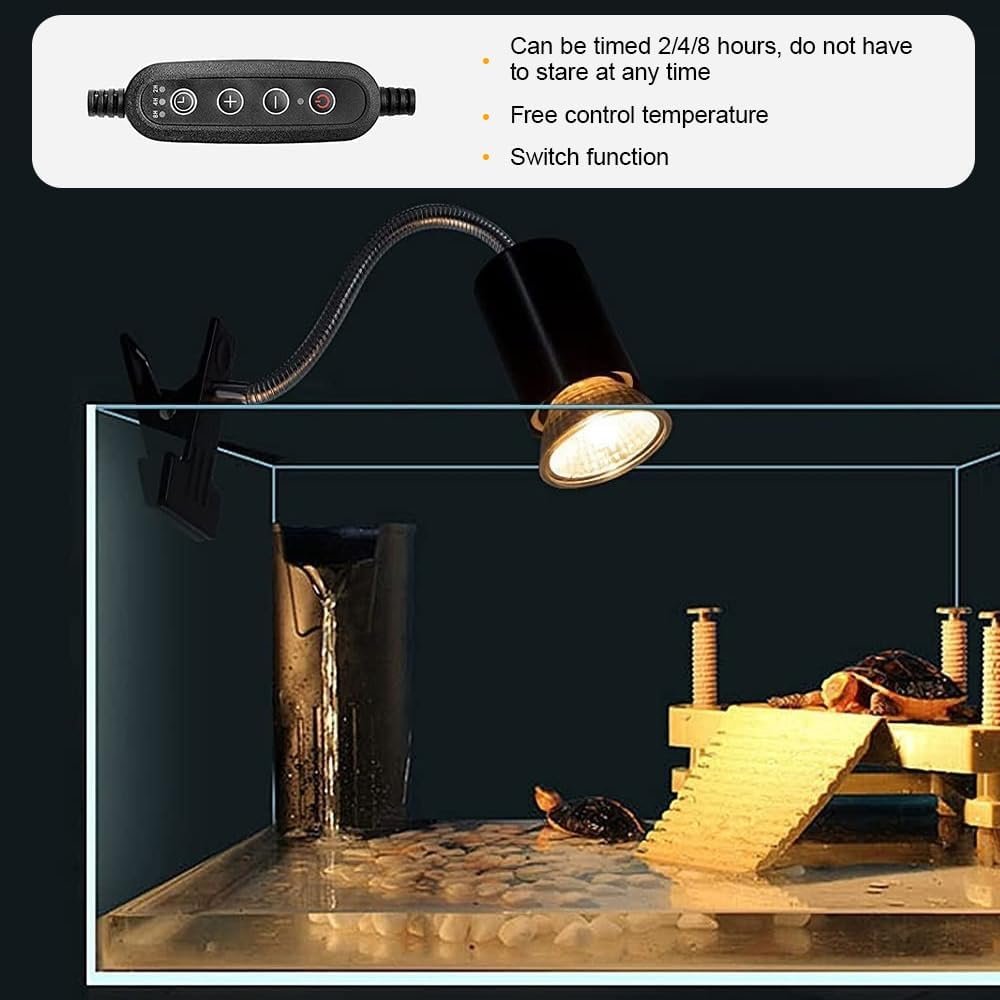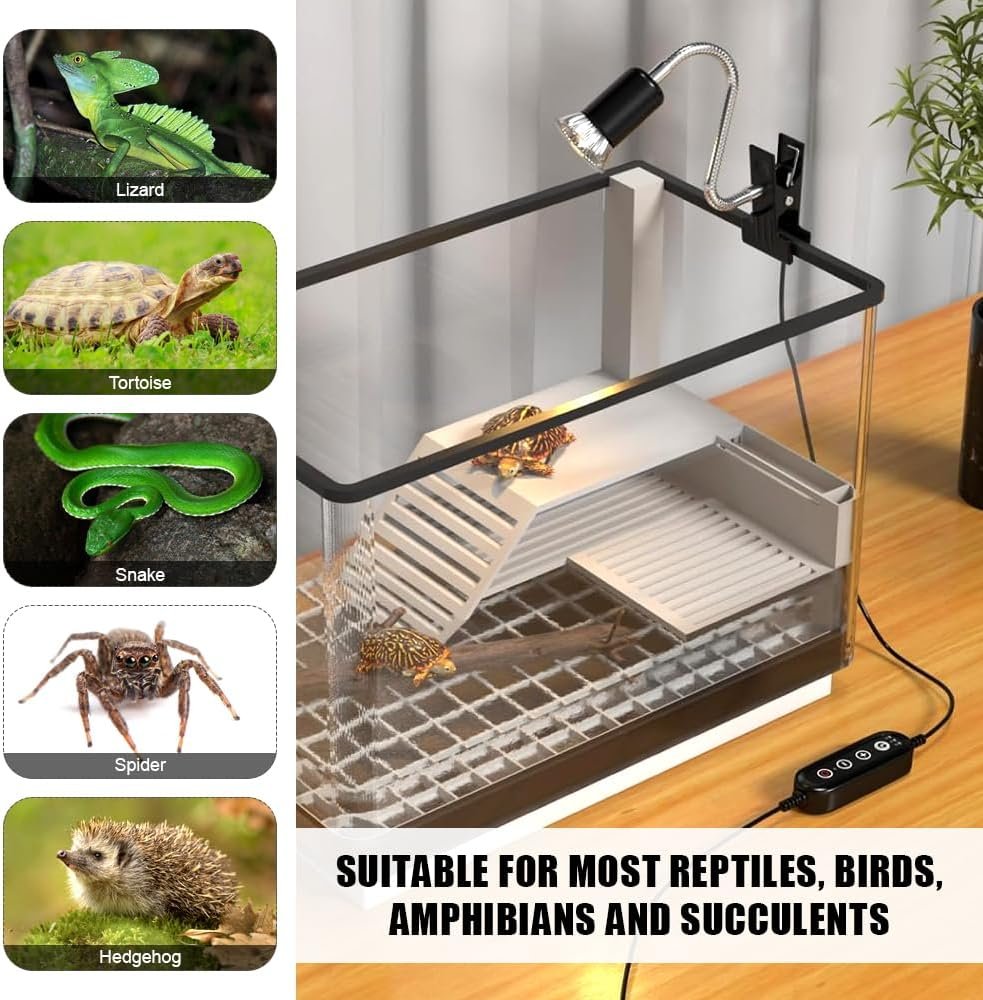 Zyklische Zeitsteuerung: Diese isolierte Reptilienleuchte verfügt über eine intelligente Zeitfunktion mit drei Timing-Optionen (2H, 4H, 8H), die sich jeden Tag automatisch zur gleichen Zeit ein- und ausschaltet und die Schildkröten-Wärmelampe den Beleuchtungsbedürfnissen verschiedener Haustiere gerecht wird.