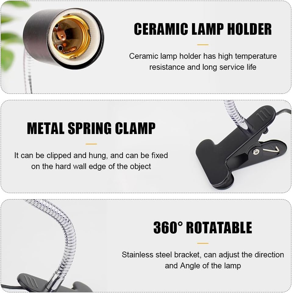 Umfangreiche Anwendungen: Standard-E27-Lampenfassung, passend für alle E27-Standardlampen; Die Reptilien-Wärmelampe eignet sich sehr gut für Reptilien und Amphibien, darunter Schildkröten, Eidechsen, Schlangen, Bartagamen, Frösche, Leguane, Schildkröten usw. Auch sehr gut für Katzen geeignet. An Wintertagen verwenden sie eine Schildkröten-Wärmelampe als Ersatz für die Sonne.
