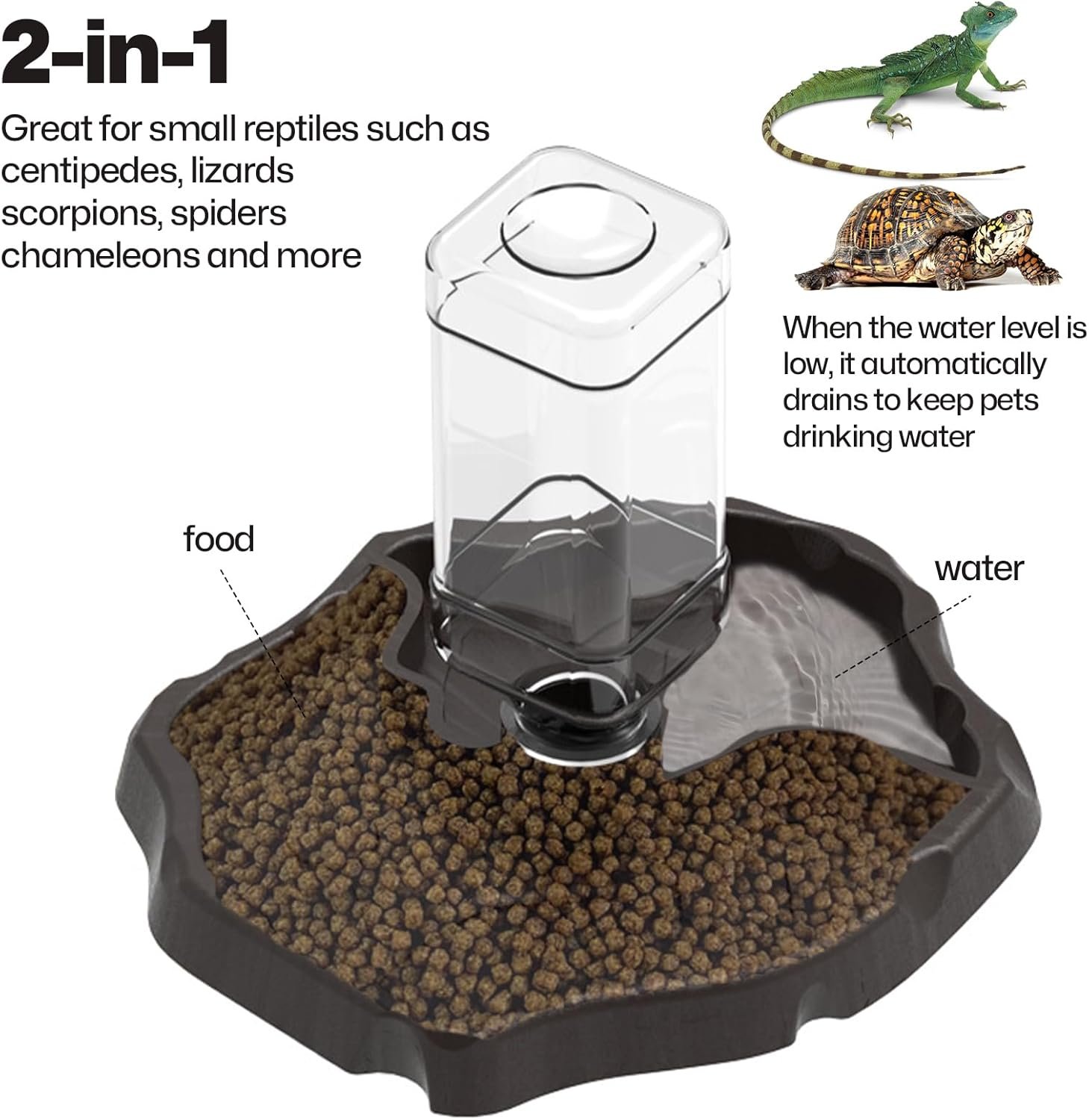 Anwendungsbreite: Der Futterspender hat ein sehr breites Anwendungsspektrum, perfekt zum Füttern kleiner Reptilien wie Schildkröten, Eidechsen, Schlangen, Frösche und mehr.