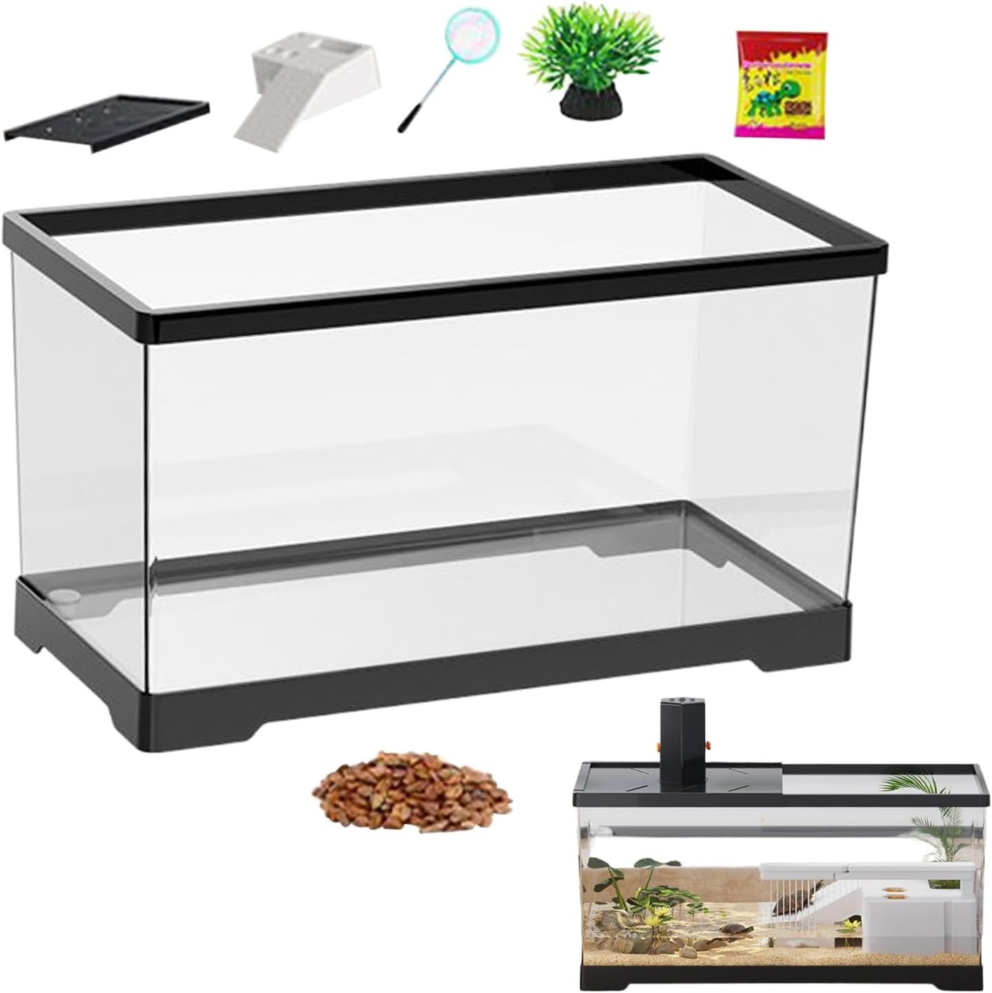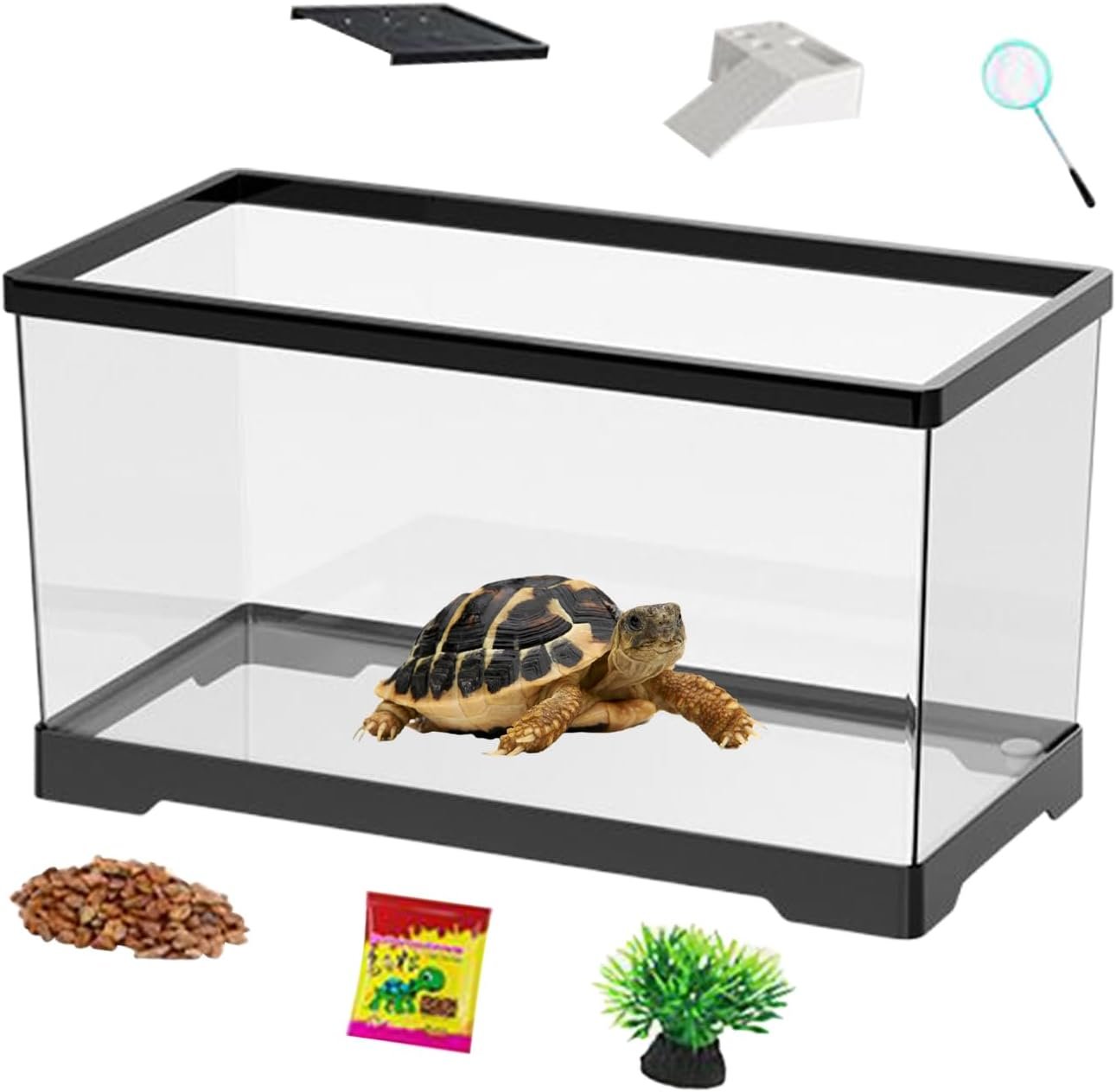 50L Glasschildkrötenaquarium mit Plattform für Liegerampe, einfache Entwässerung, Bandplattenthermometer für kleine Schildkröten