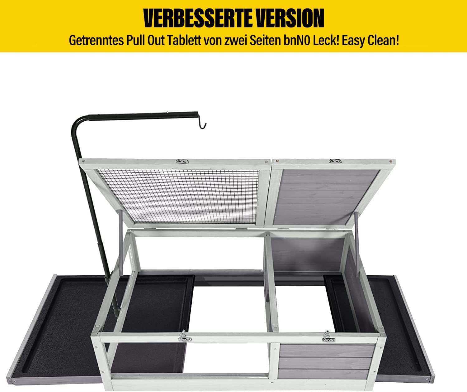 100 % Massivholz außer billigem Sperrholz, wasserdicht, natürlich lackiert, ungiftig für Tiere, perfekt für den Innen- und Außenbereich.