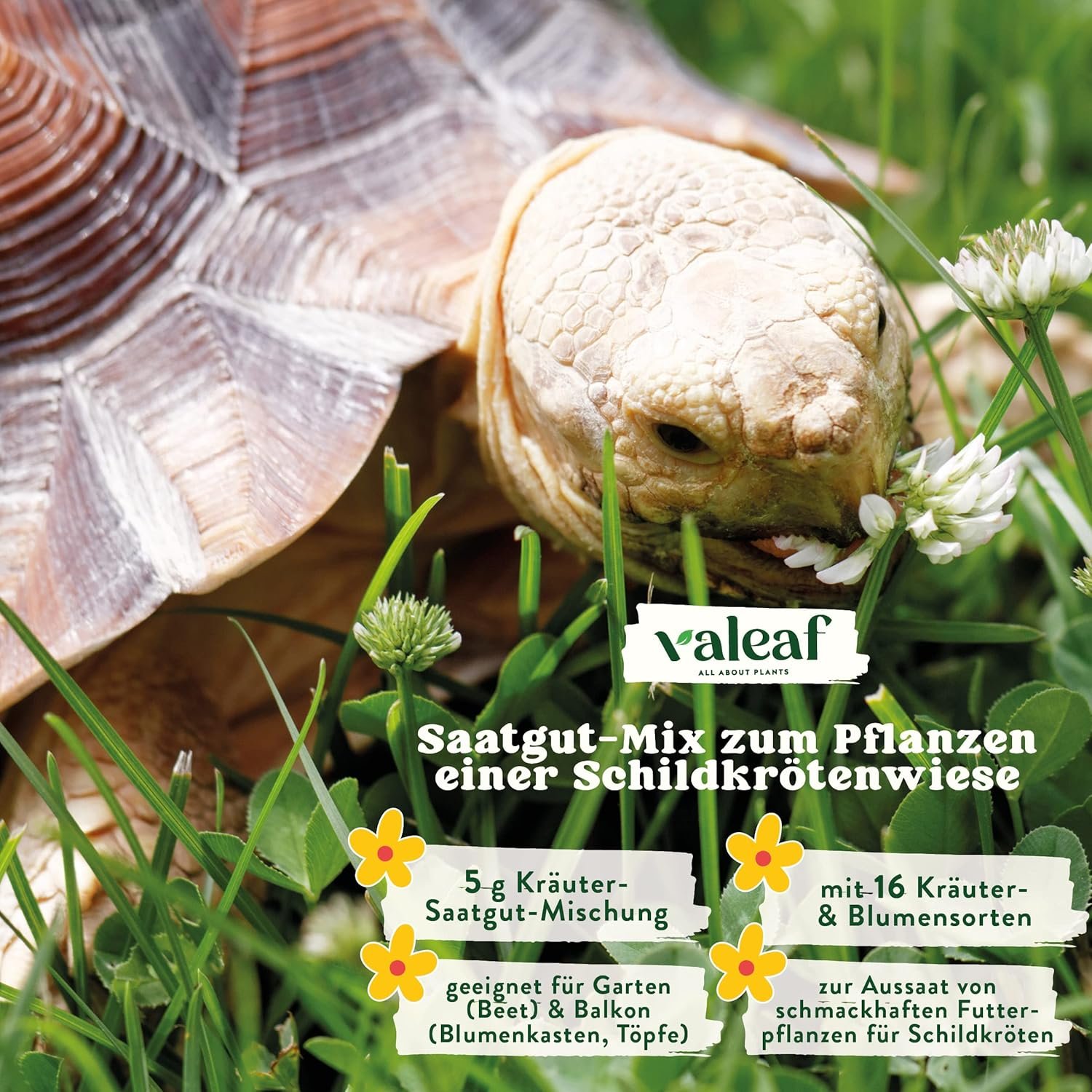 Pflanzen Sie eine Wildkräuterwiese für Schildkröten – mit der Kräutermischung für Schildkrötensamen von Valeaf