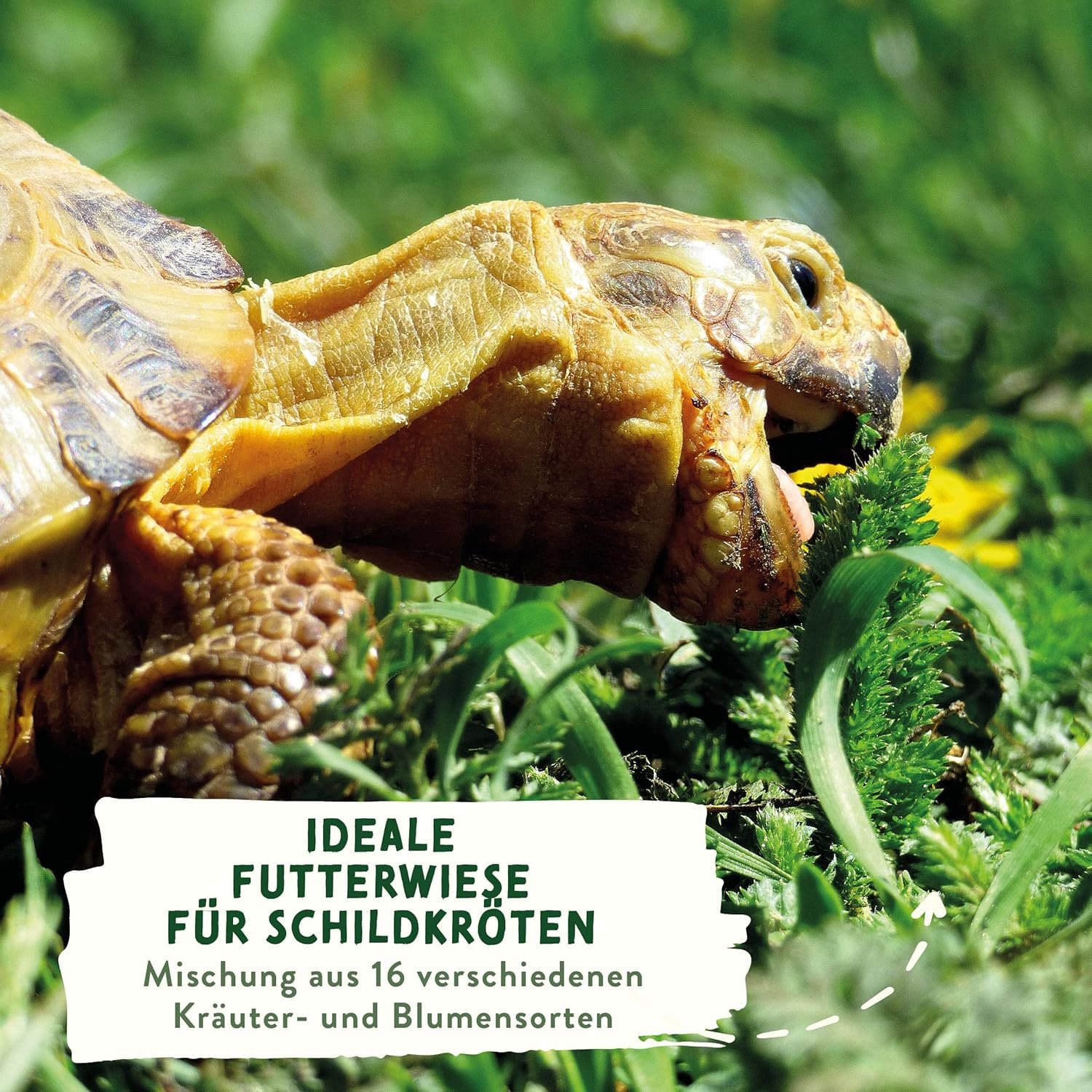 Mit der Samenmischung können Sie eine leckere Futterwiese anlegen. Gibt es etwas Schöneres, als Ihren Schildkröten beim „Abernten“ Ihrer selbst gesäten Wildkräuterwiese zuzusehen?