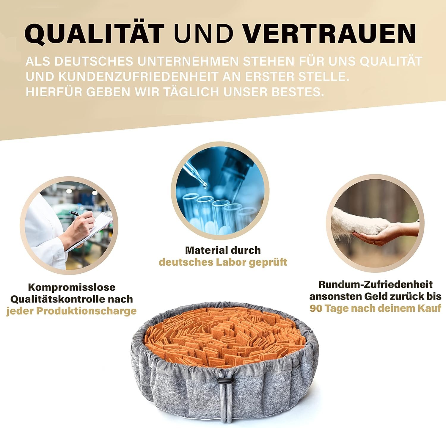 Qualität und Sicherheit – Kundenzufriedenheit und das Wohlbefinden Ihres Haustieres stehen für uns an erster Stelle. Deshalb setzen wir auf konsequente Qualitätskontrollen. Unsere Materialien werden von einem deutschen Labor getestet.
