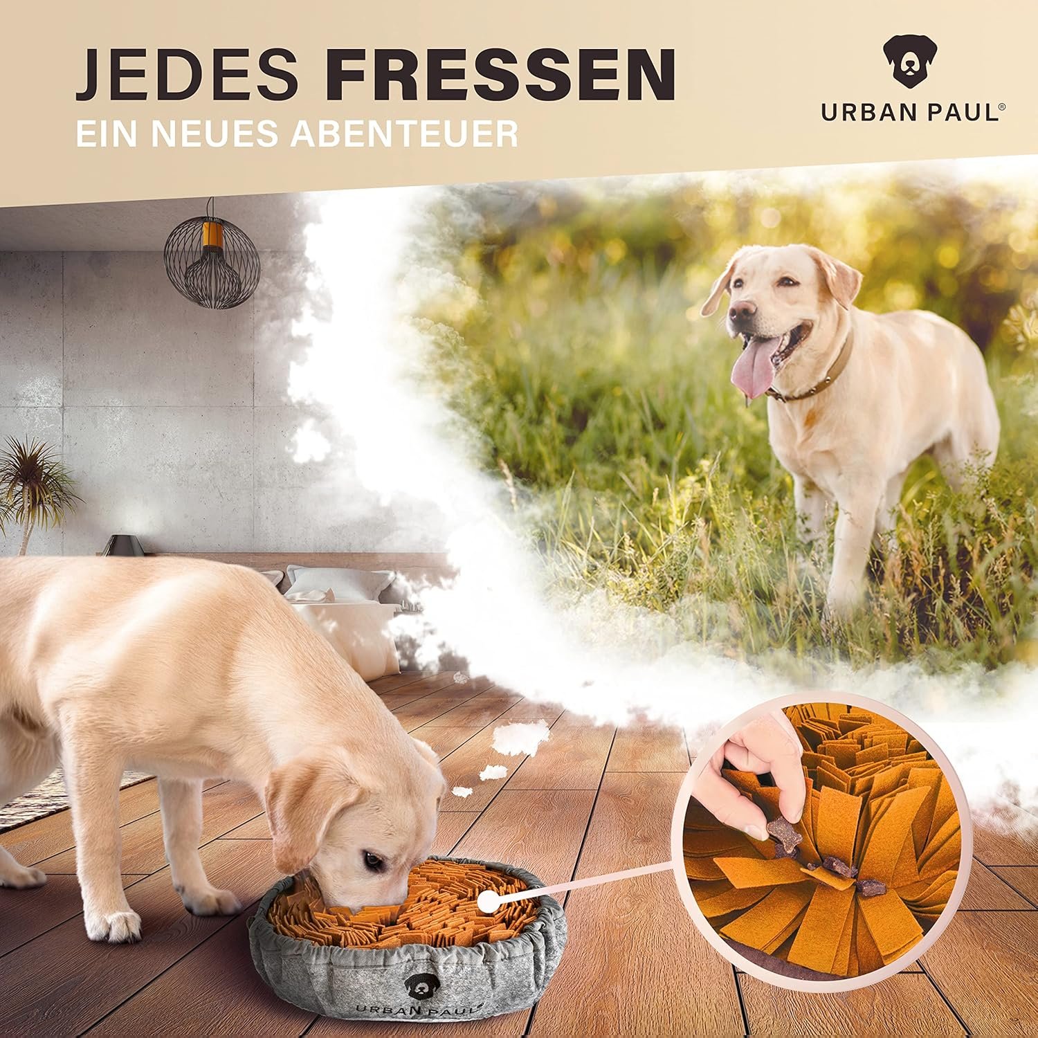 Natürliche Instinkte – Fördern Sie das Wohlbefinden Ihres Vierbeiners mit unserem hochwertigen Hundeschnüffelteppich und machen Sie es zu 100 % möglich. Die optimale Hundebeschäftigung für zu Hause.
